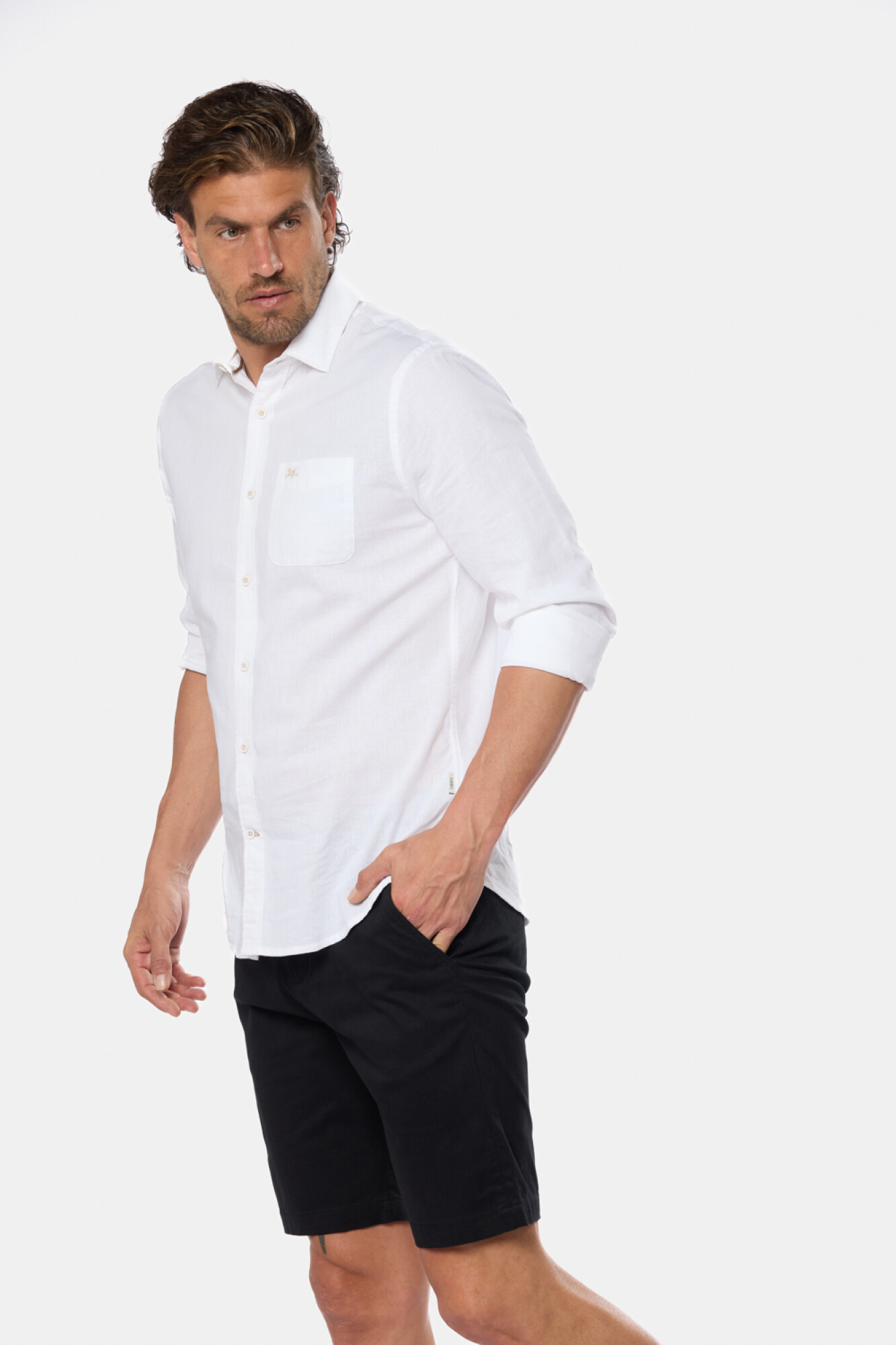 Bermuda clásica confeccionada en algodón con elasticidad , bolsillos laterales y detalle en bolsillo trasero.