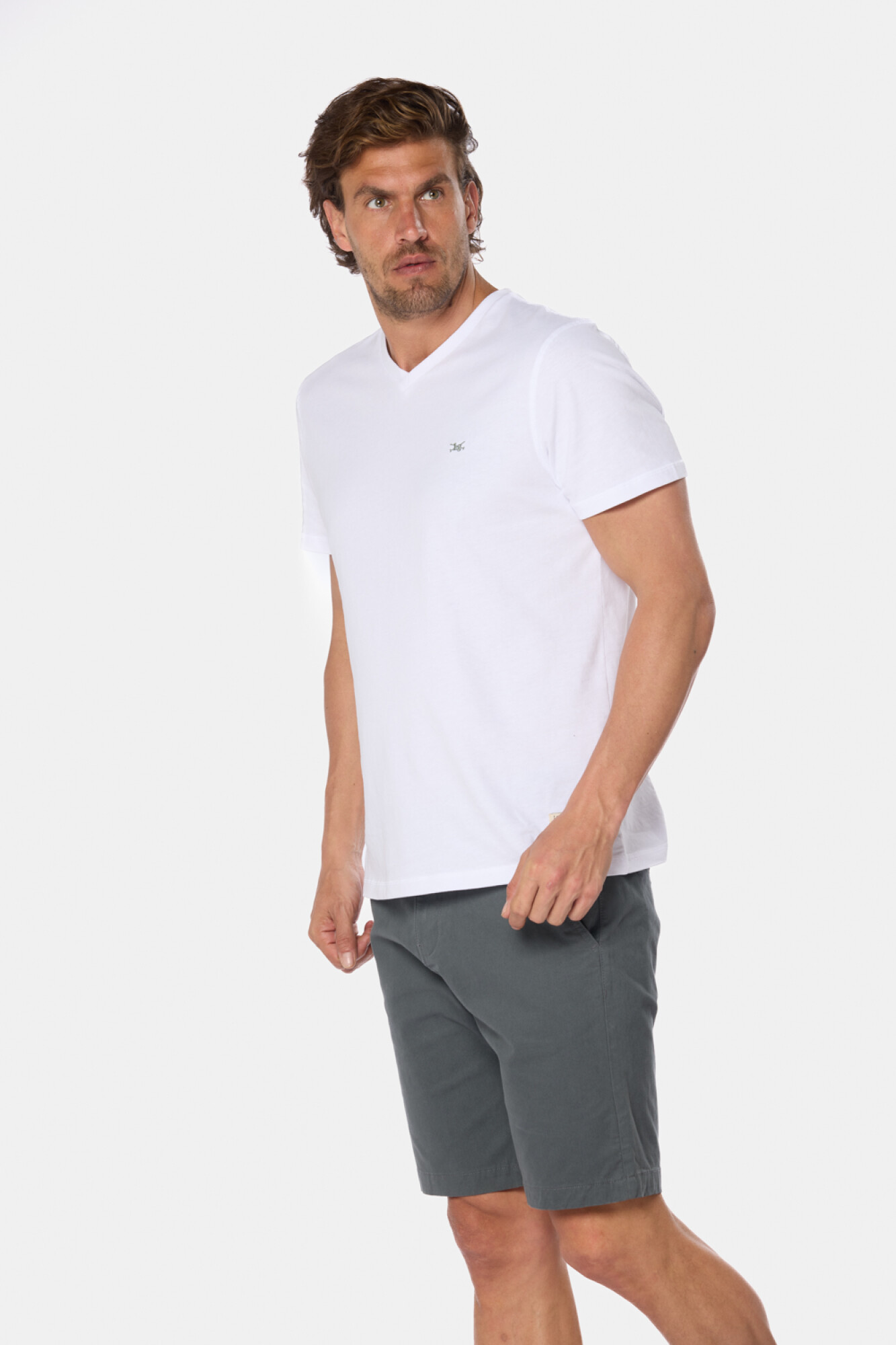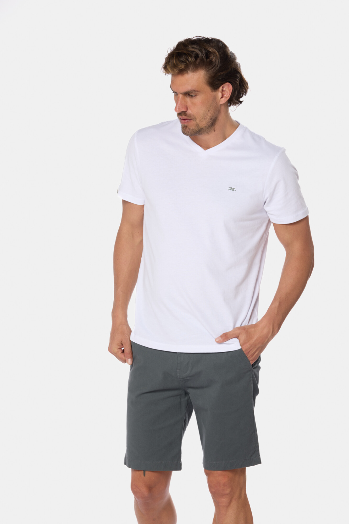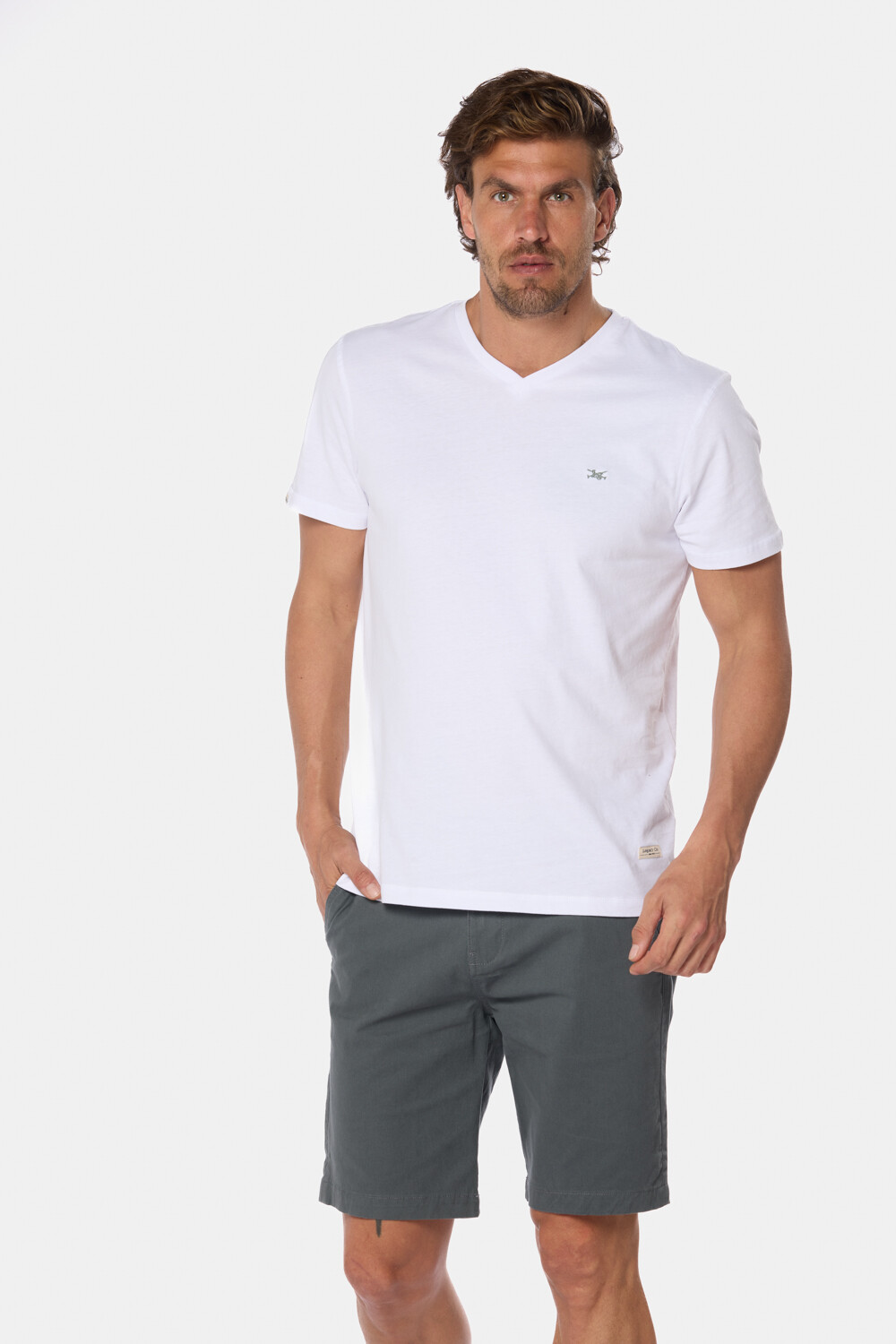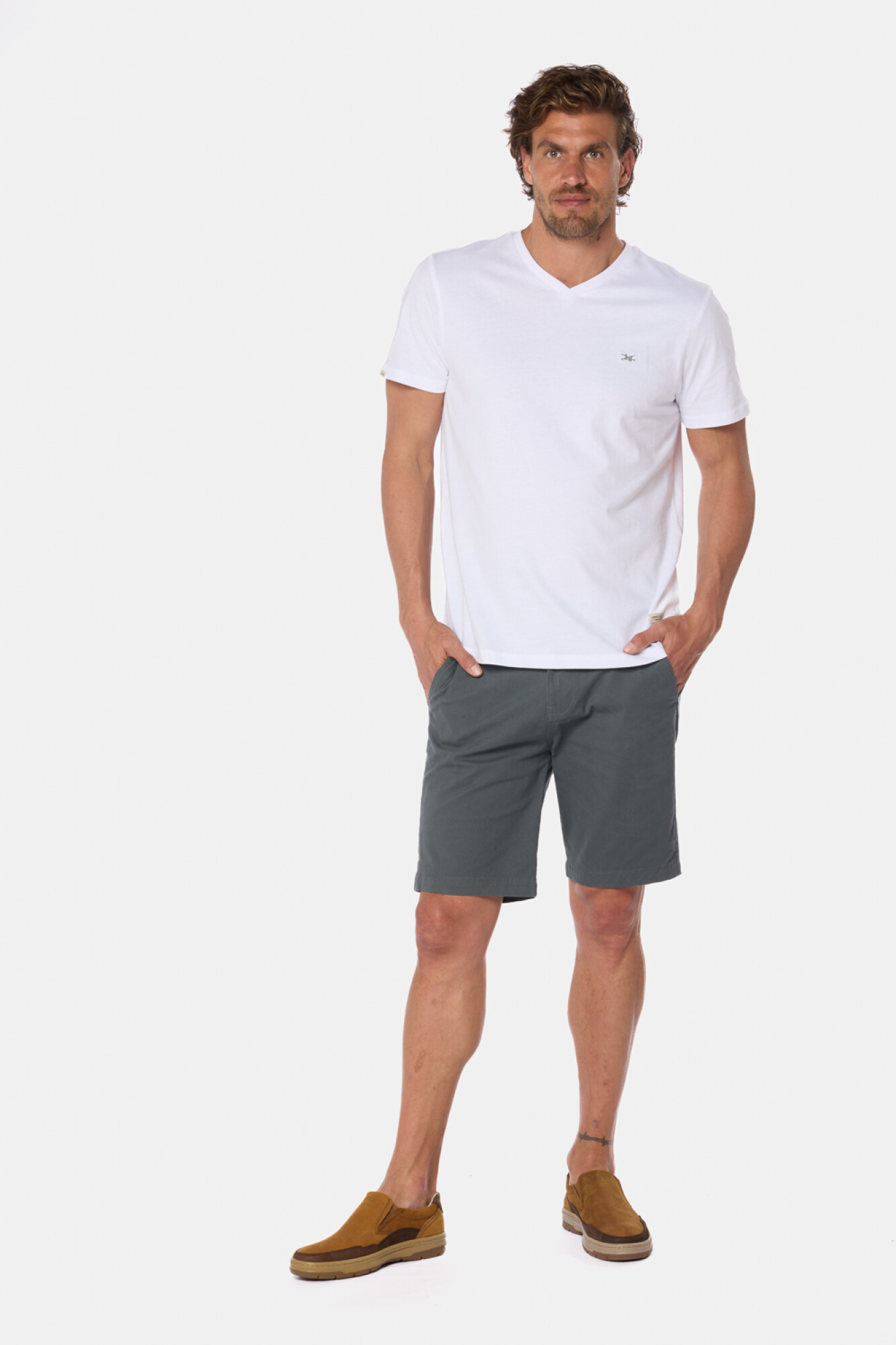 Bermuda clásica confeccionada en algodón con elasticidad , bolsillos laterales y detalle en bolsillo trasero.