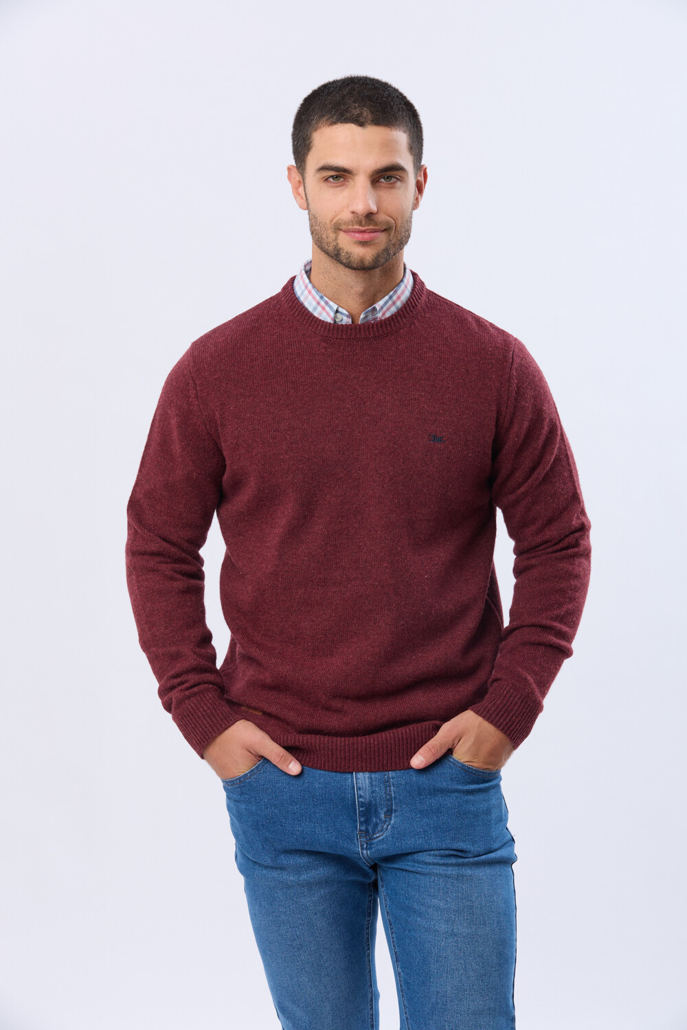 Buzo tejido de lana, escote a la base. Una prenda esencial que suma abrigo y calidez con un calce impecable. El modelo mide 1,82 m y usa talle M