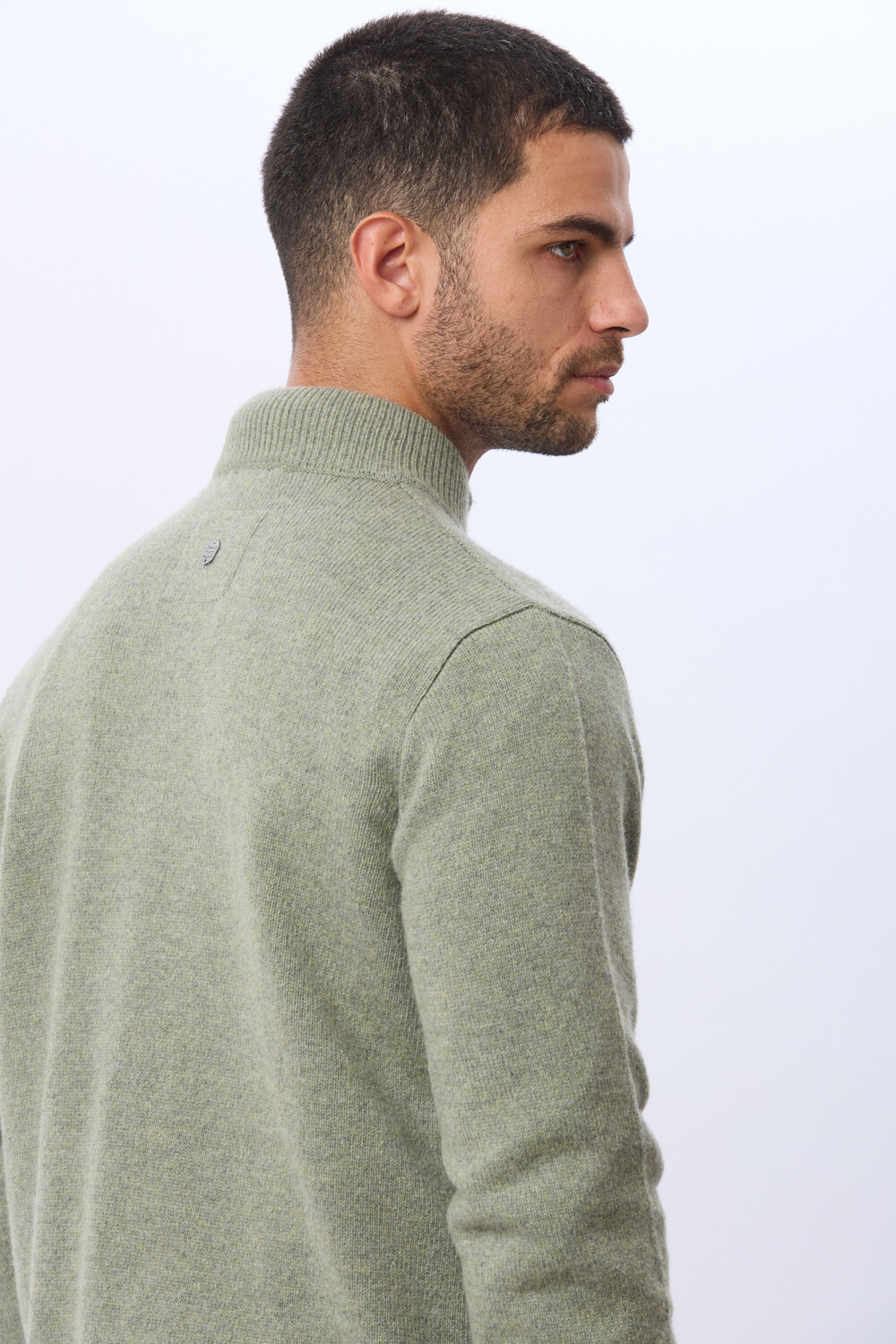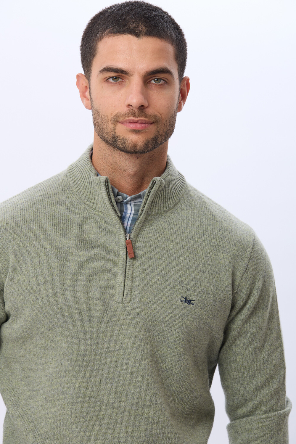 Buzo tejido de LANA medio cierre metálico con cuello alto. Logo bordado en el pecho.
