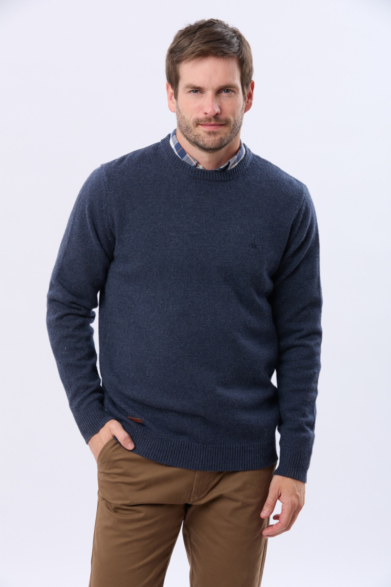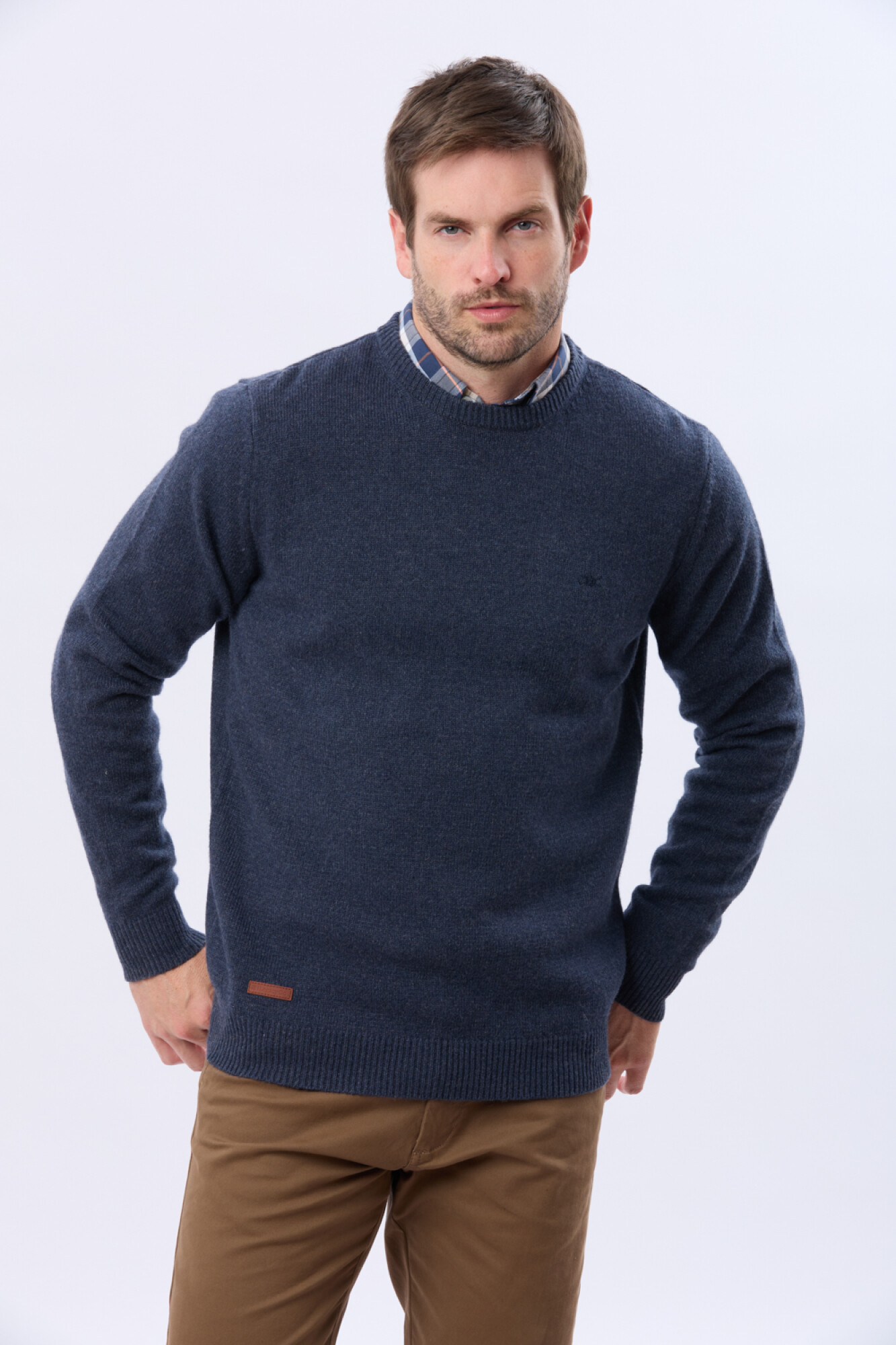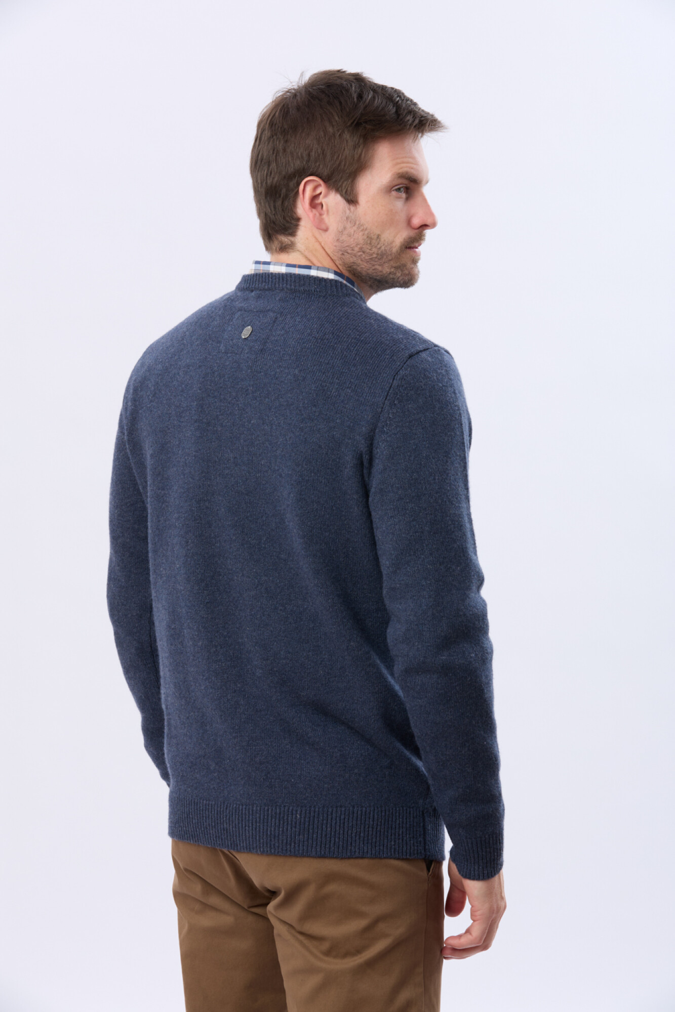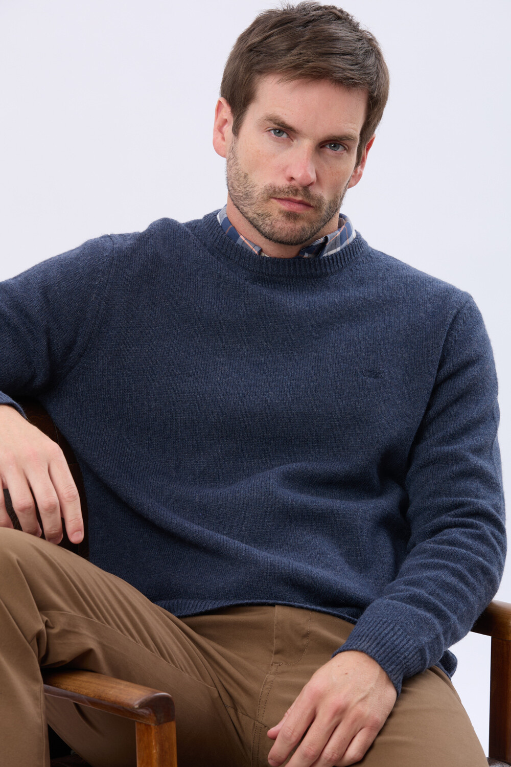 Buzo tejido de lana, escote a la base. Una prenda esencial que suma abrigo y calidez con un calce impecable. El modelo mide 1,82 m y usa talle M