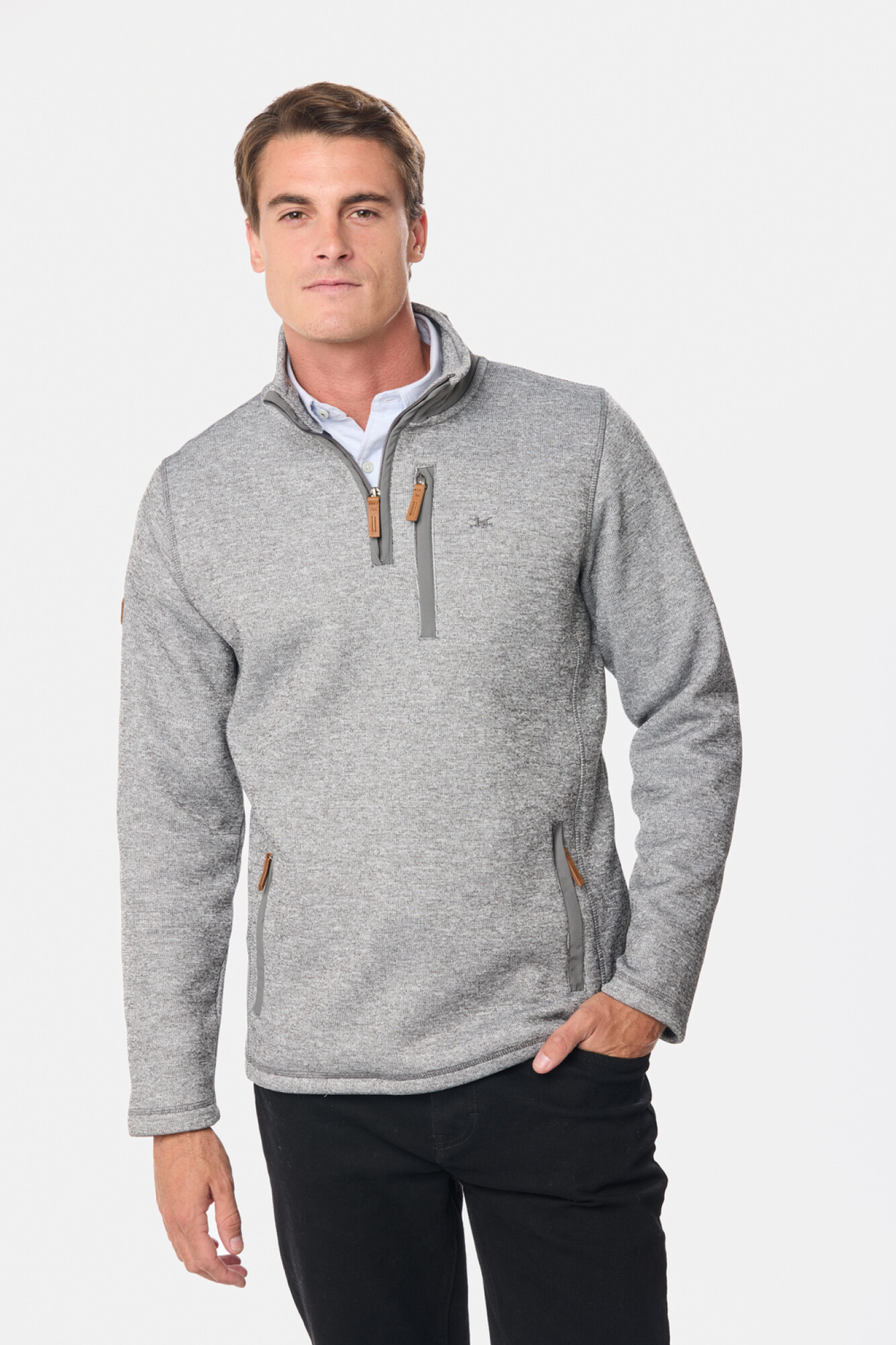 Buzo medio cierre en felpa tipo tejida con el reves de la tela en polar, lo cual lo hace una prenda muy abrigada, liviana y con alta resistencia al viento.