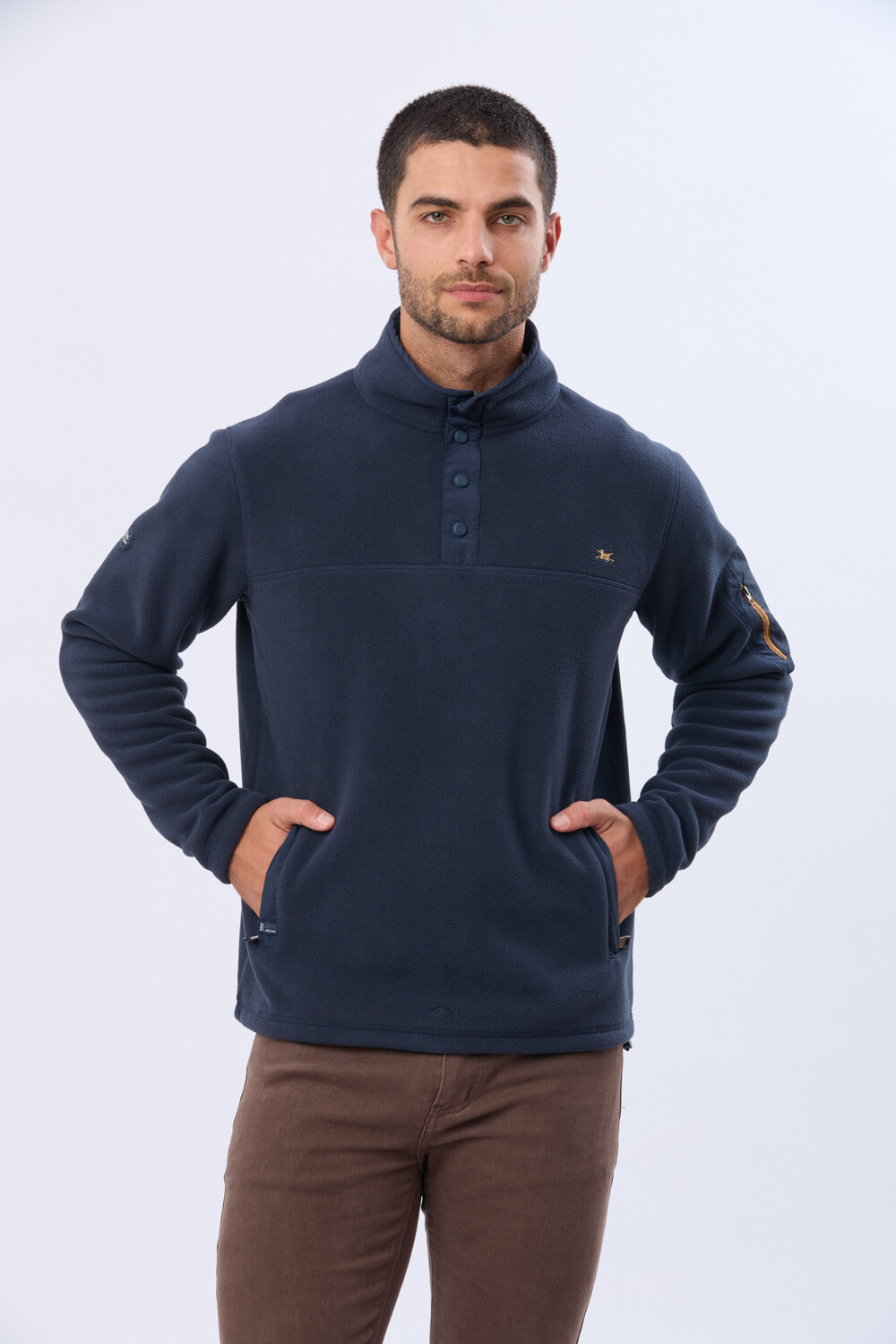 LegacyBUZO POLAR DE ABRIGO - AzulBuzo de abrigo en polar. Prenda térmica que mantiene el calor, con alta resistencia al viento. Frente con broches, bolsillos laterales exteriores con cierre y bolsillo con cierre en la manga. El modelo mide 1,85 m y usa talle M.LC05538AZULhttps://legacy.com.uy/catalogo/buzo-polar-de-abrigo-azul_LC05538_AZUL
