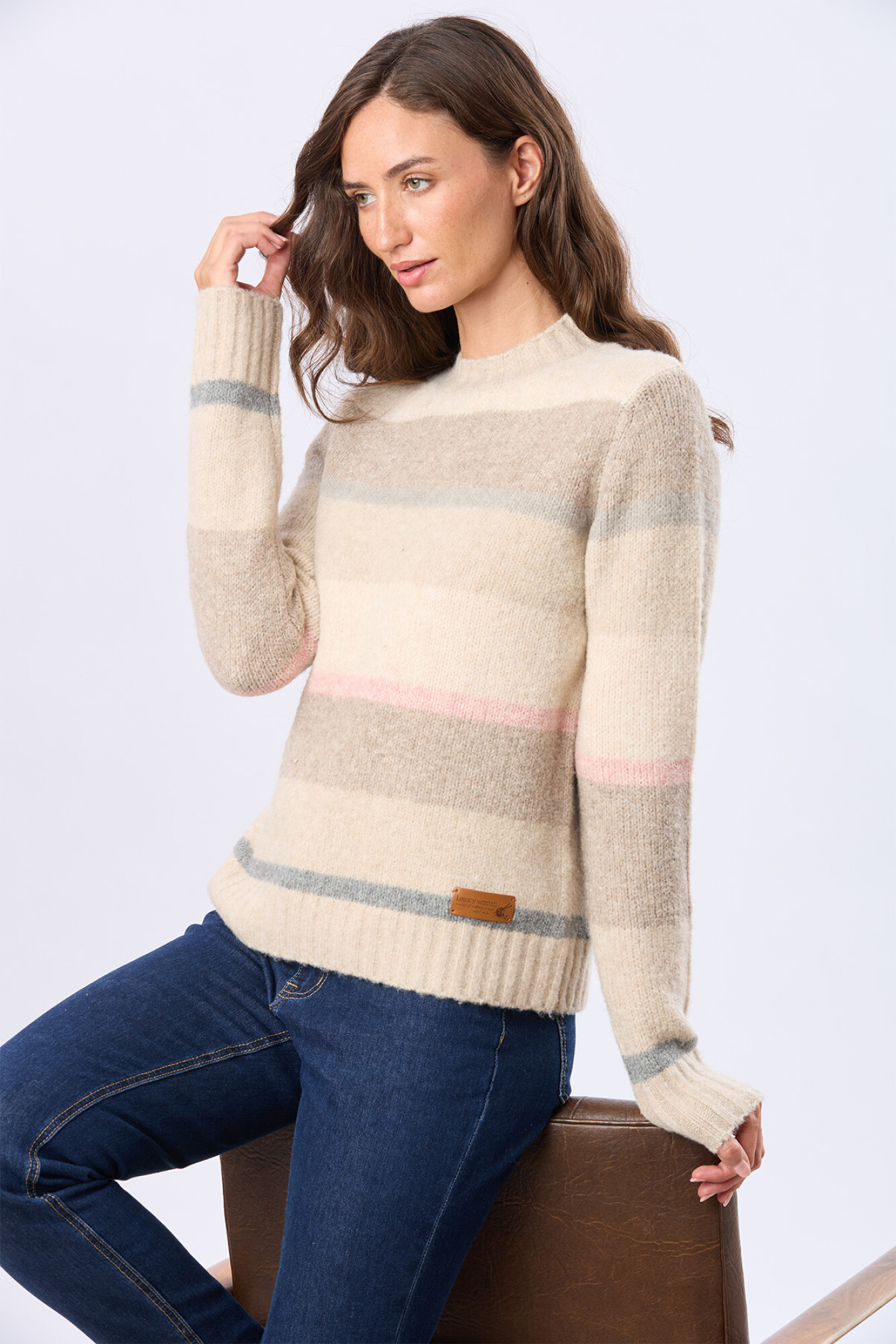 Legacy WomanBUZO TEJIDO A RAYAS - BeigeBuzo tejido rayado. Prenda de abrigo de tacto suave y cálido. Cuello y puños de rib, ideal para un estilo invernal relajado y moderno. La modelo mide 1,70 m y usa talle S.LTD6651BEIGEhttps://legacy.com.uy/catalogo/buzo-tejido-a-rayas-beige_LTD6651_BEIGE