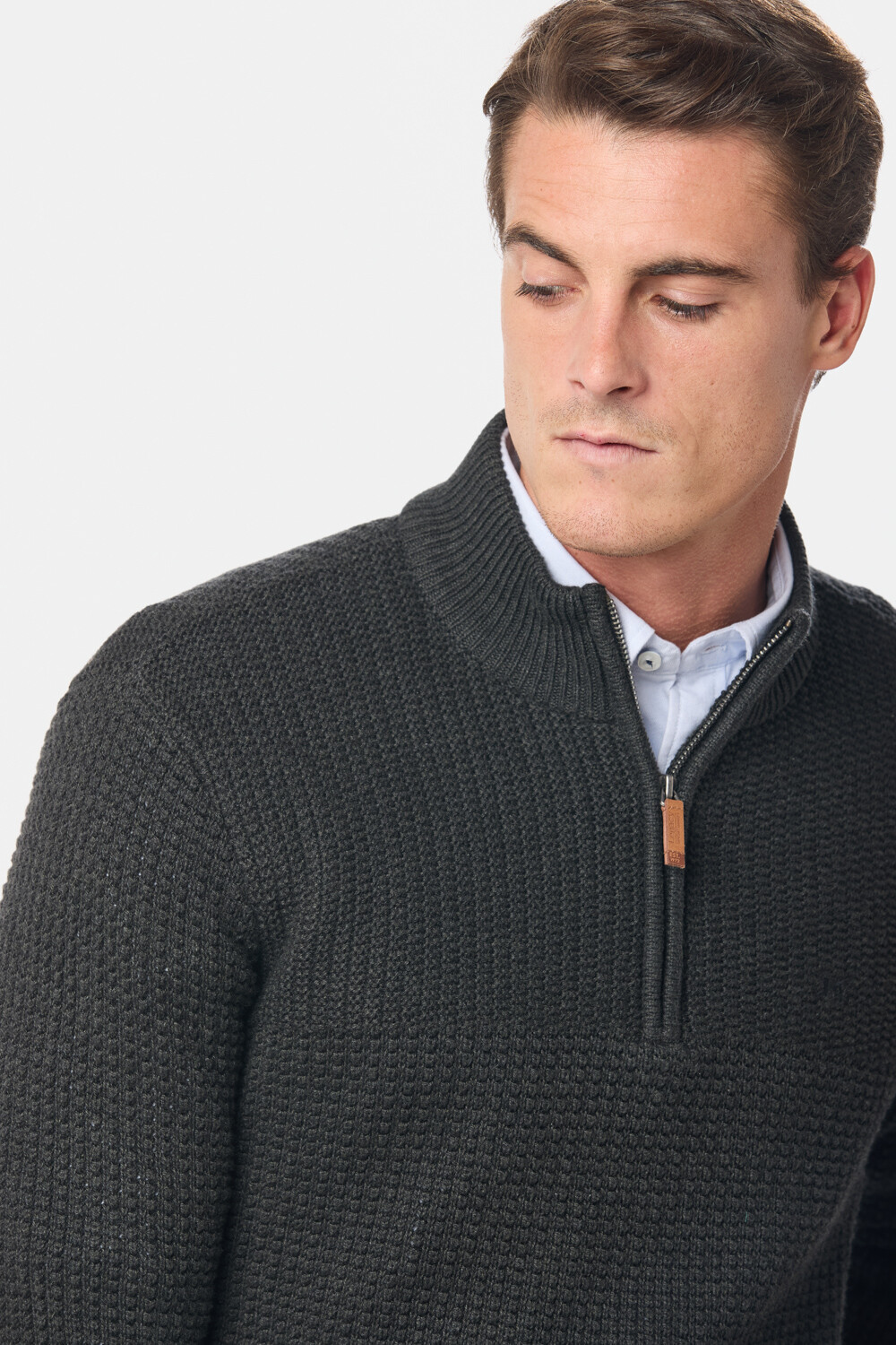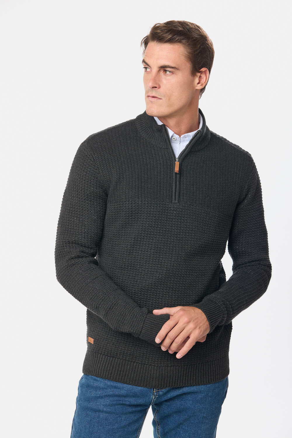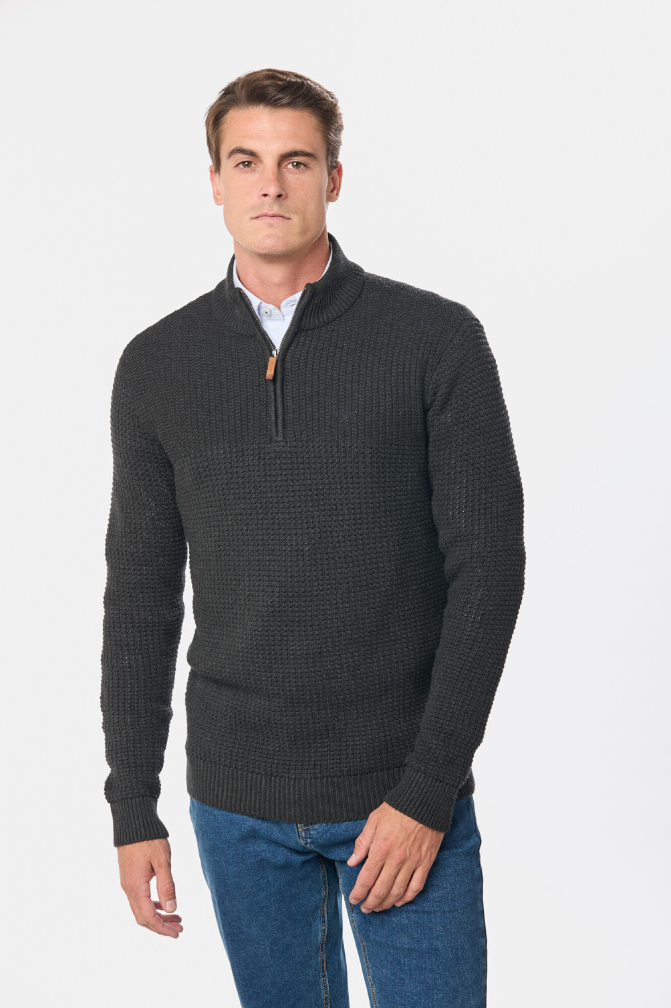 BUZO TEJIDO MEDIO CIERRE CON ESTRUCTURA - Gris Oscuro