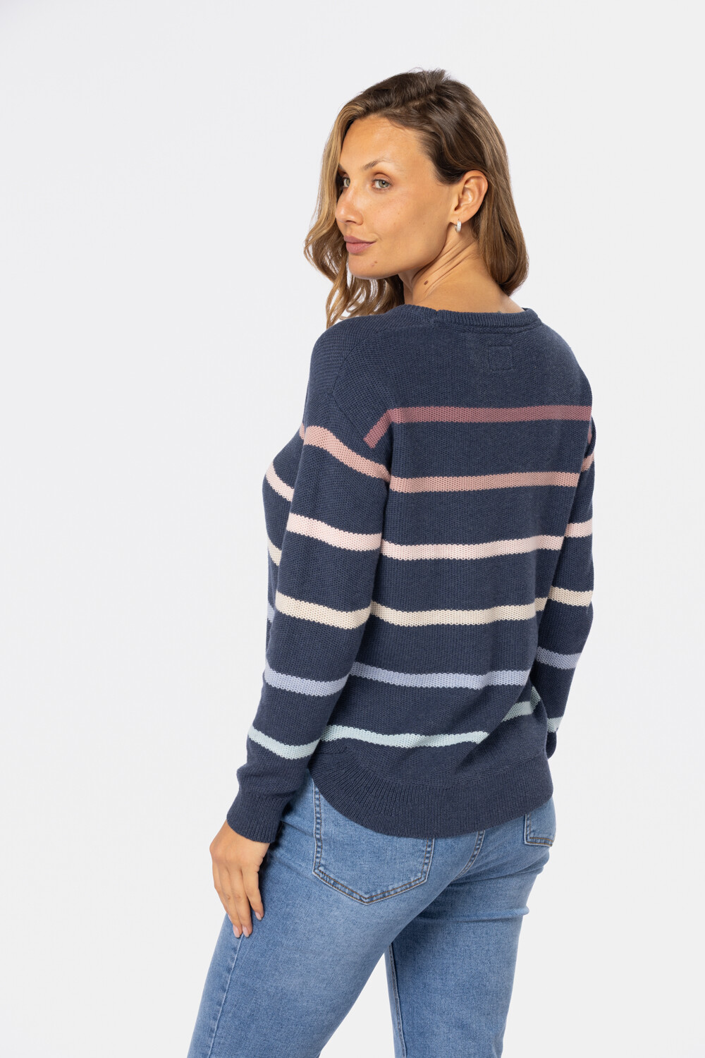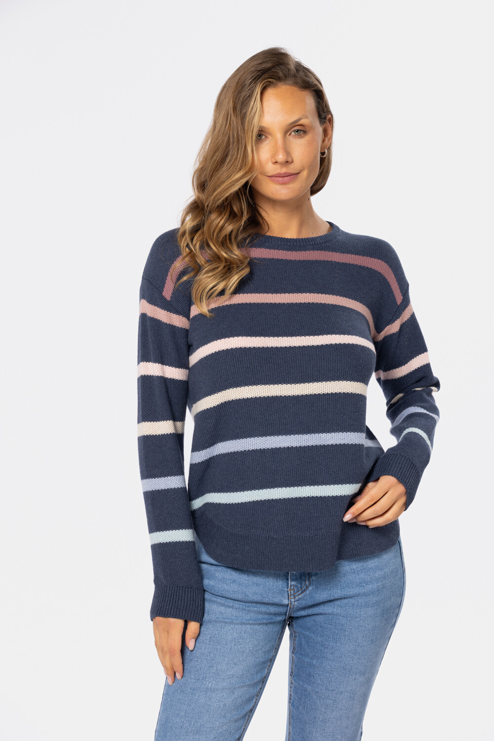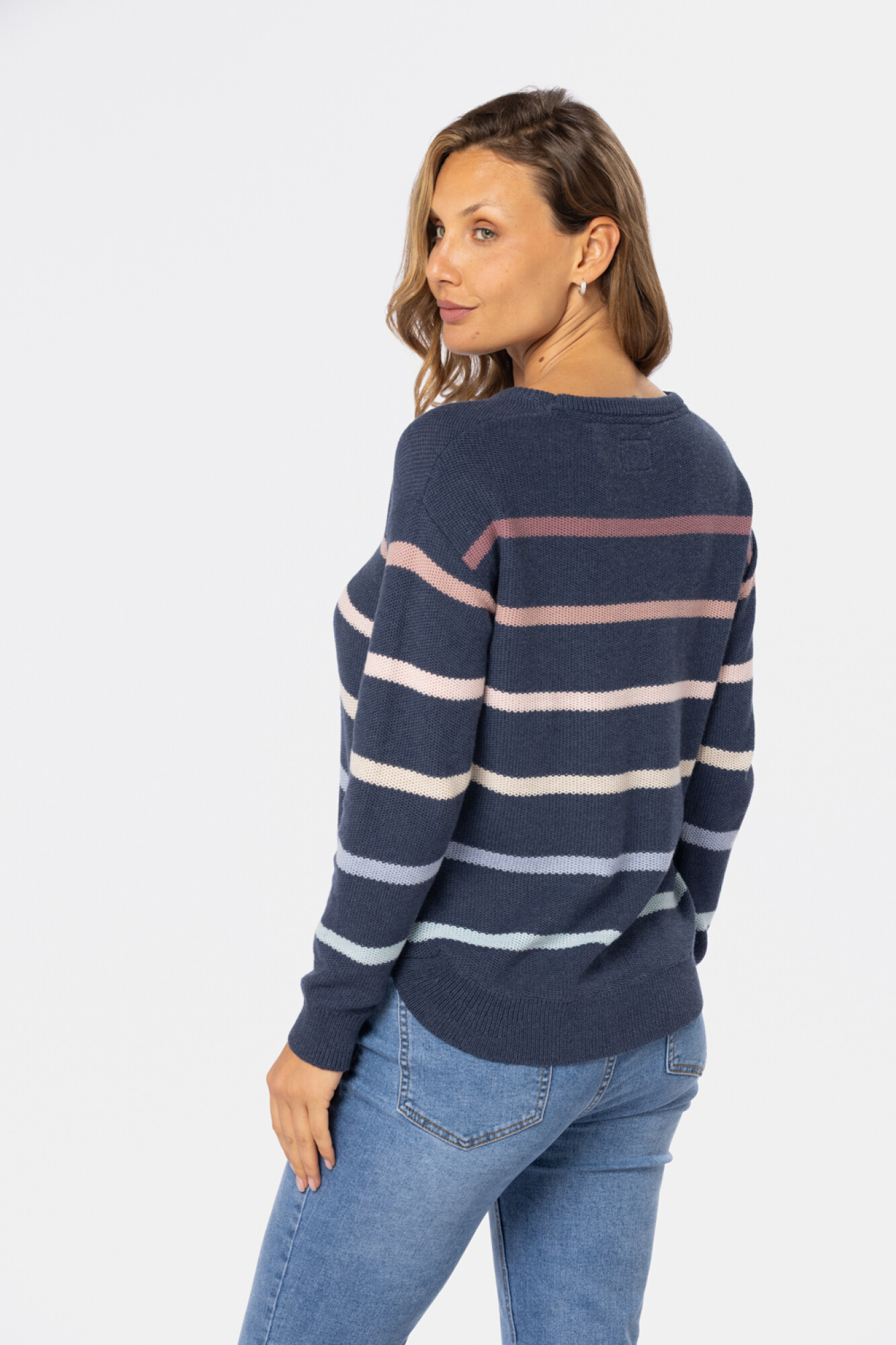 Buzo tejido fino a rayas multicolor , confeccionado en algodón