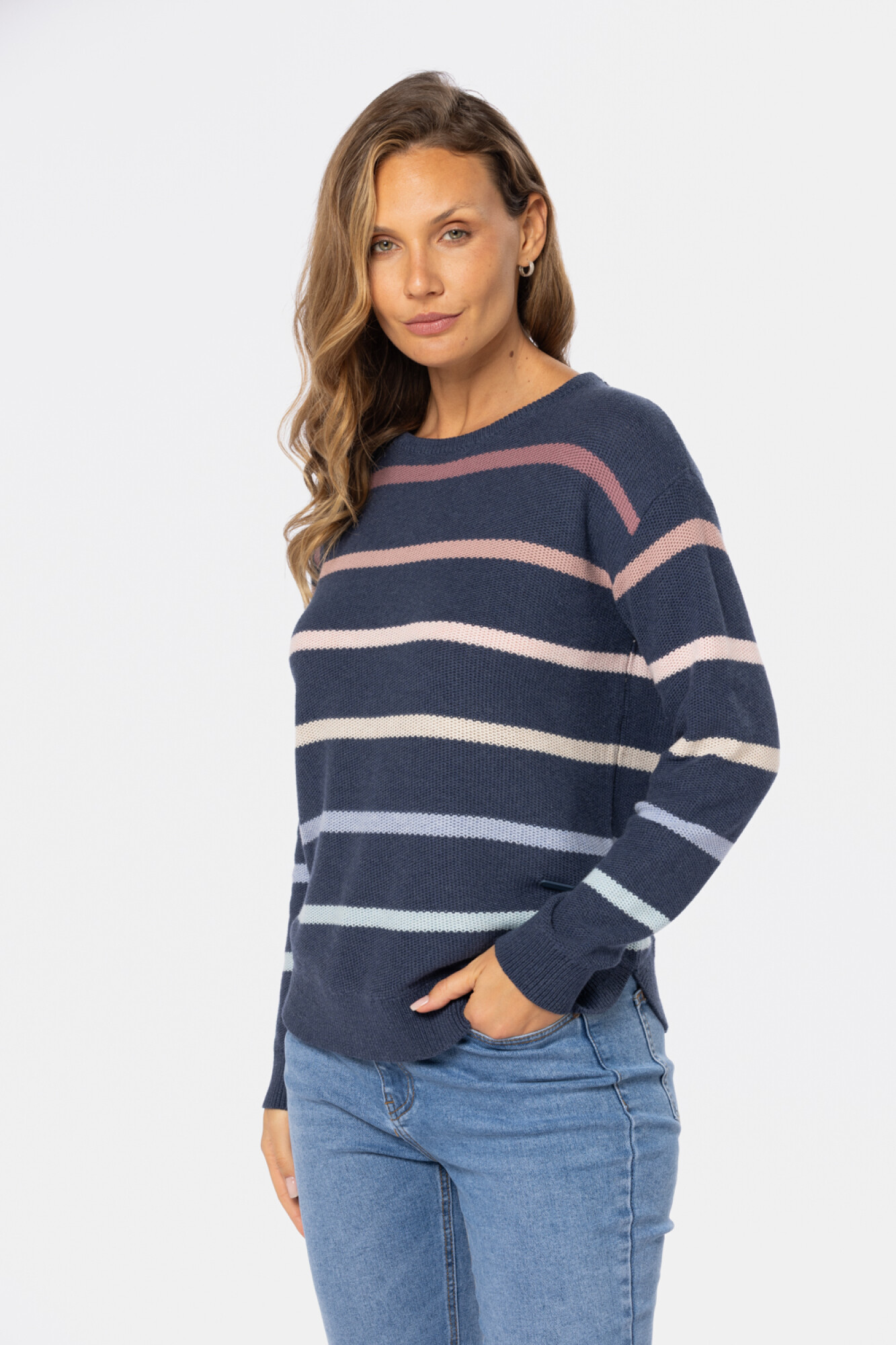 Buzo tejido fino a rayas multicolor , confeccionado en algodón LTD6640AZUL https://legacy.com.uy/catalogo/buzo-tejido-rayado-azul_LTD6640_AZUL
