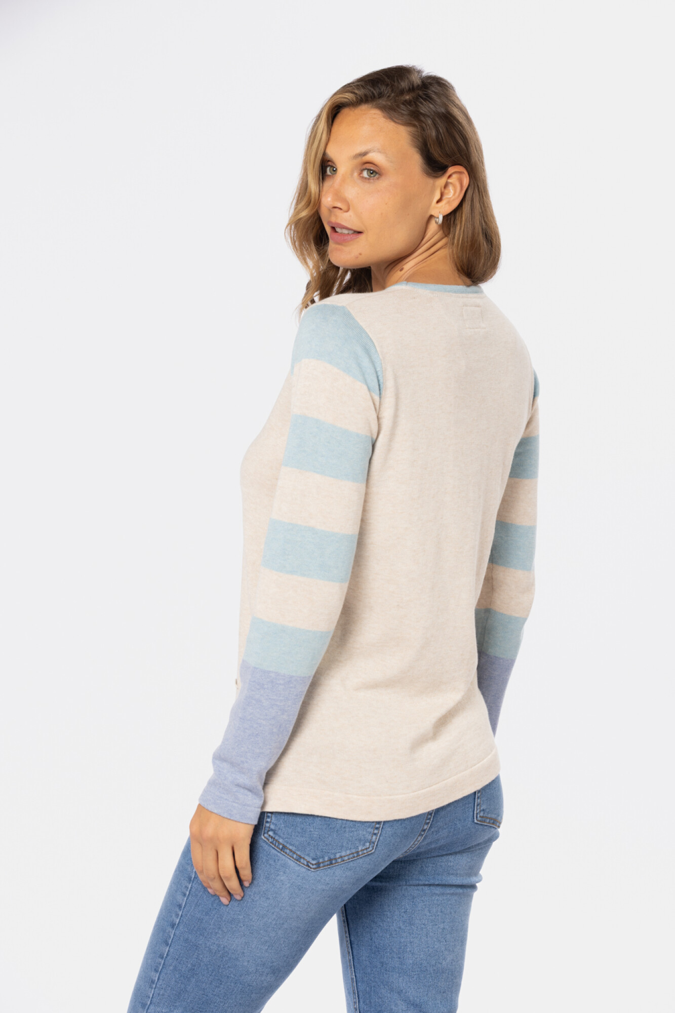 BUZO TEJIDO RAYADO - Beige UYU 1.980