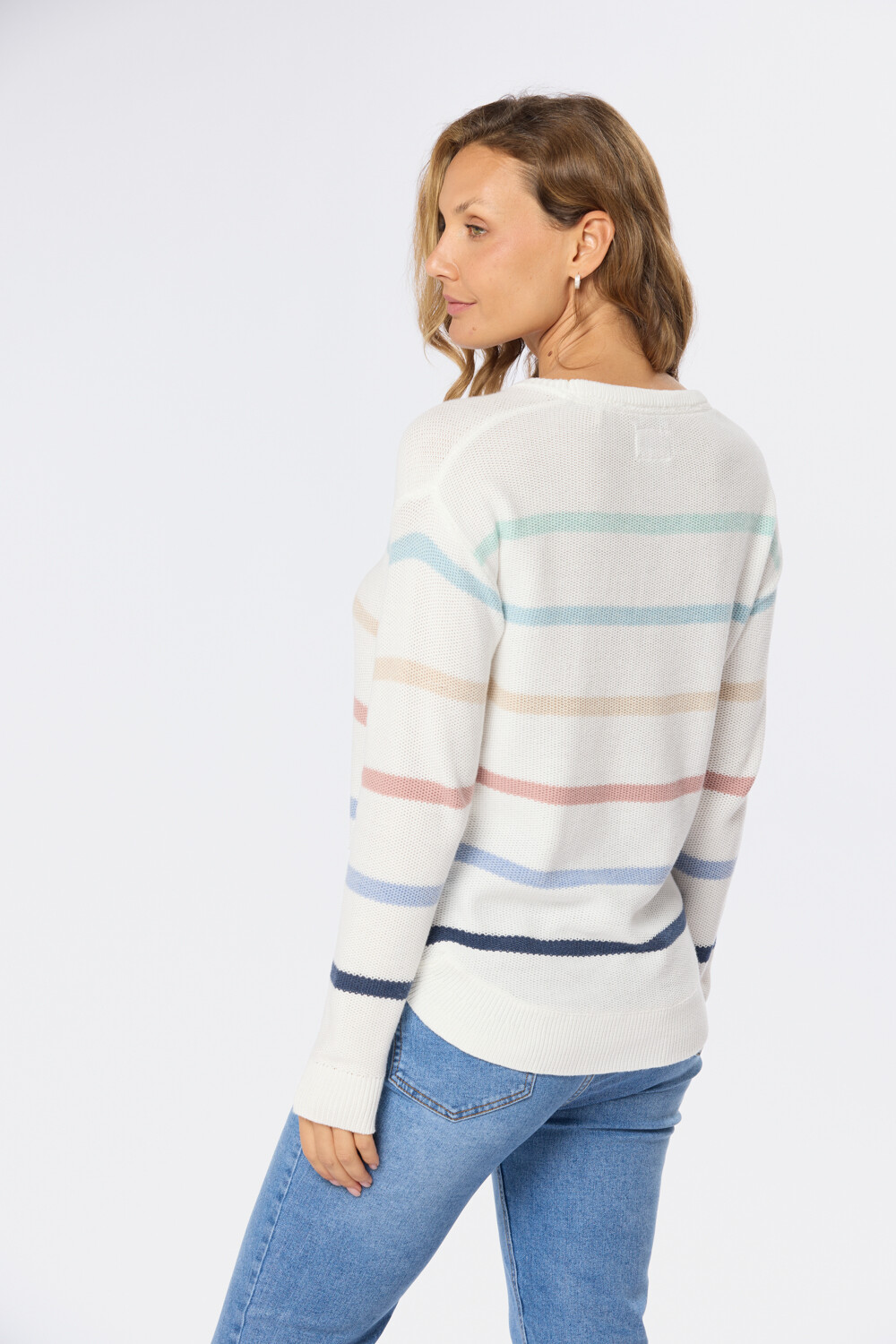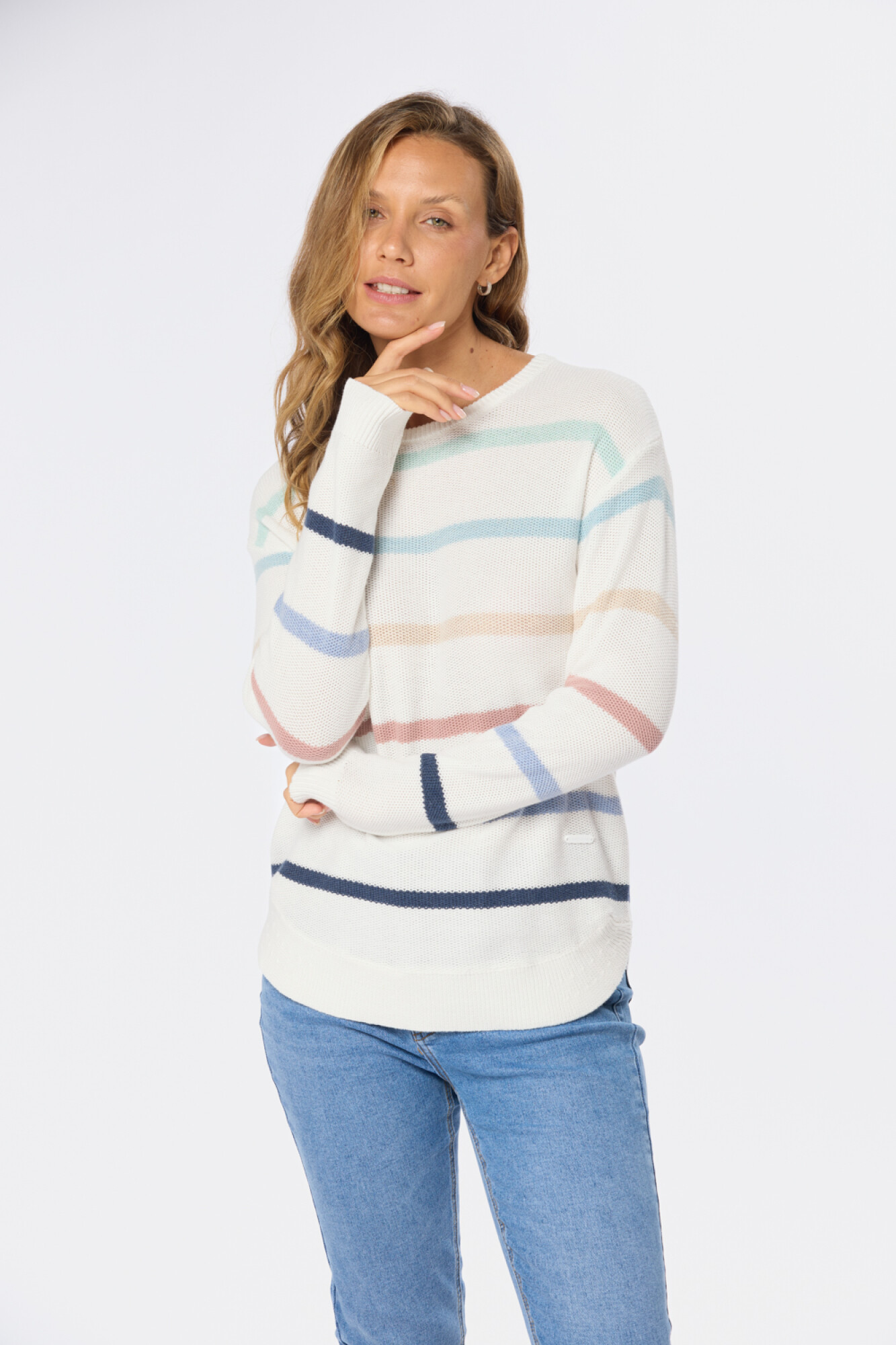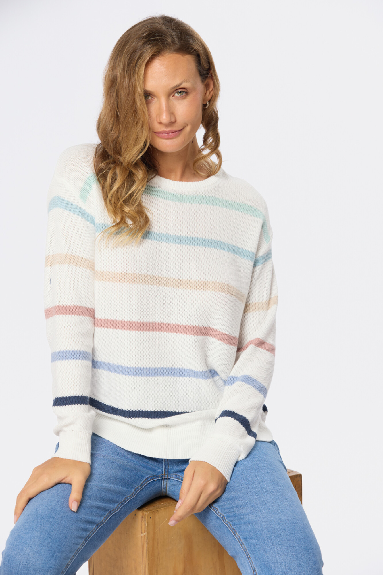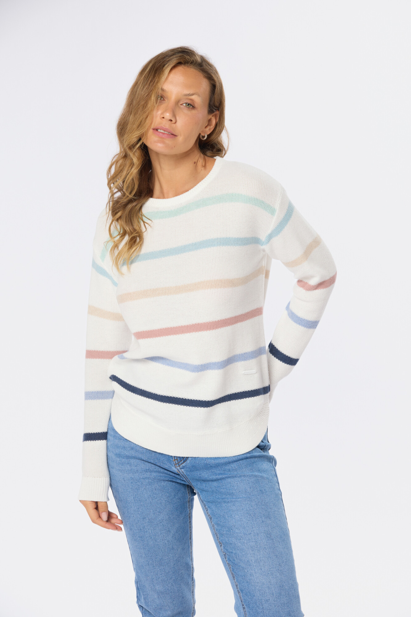 Buzo tejido fino a rayas multicolor , confeccionado en algodón