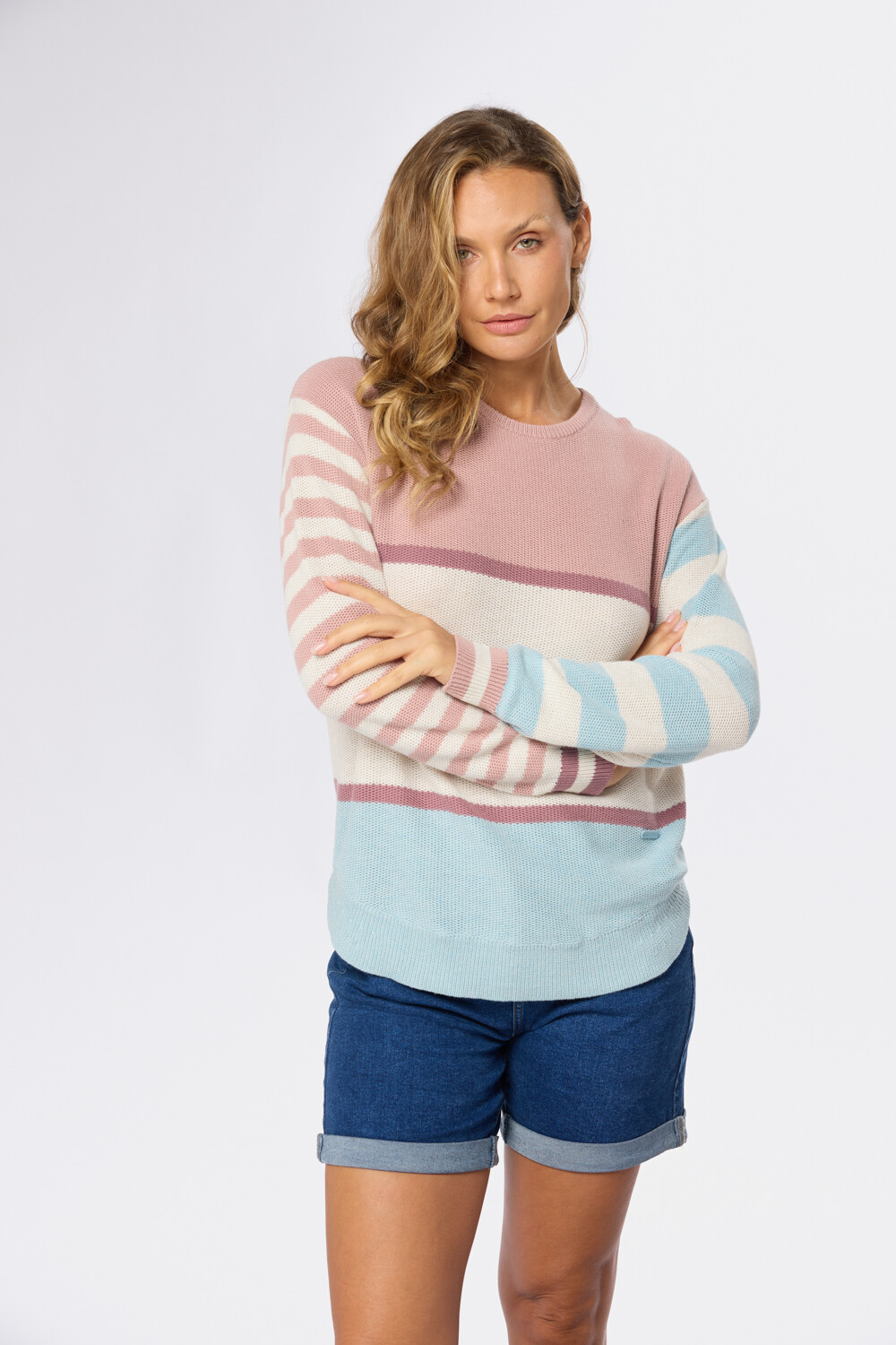 Buzo tejido fino rayado combinado , confeccionado en algodón