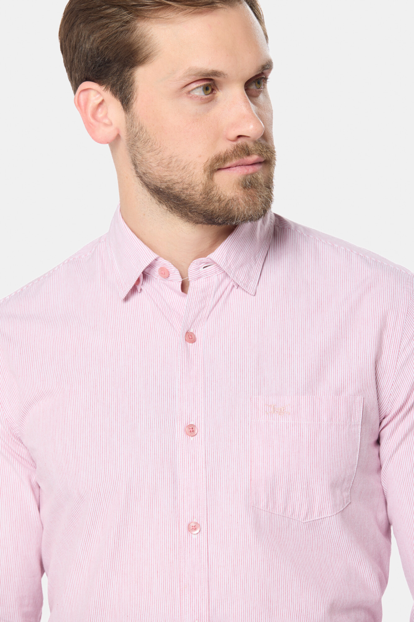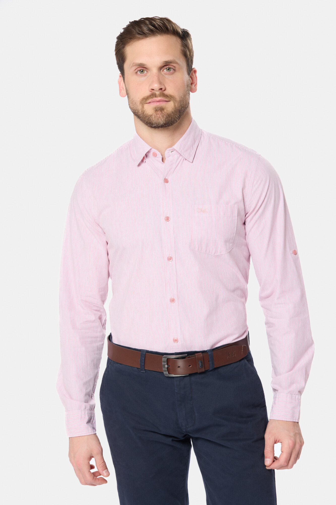 Camisa rayada manga larga modelo slim con bolsillo ,confeccionada 100%en algodón