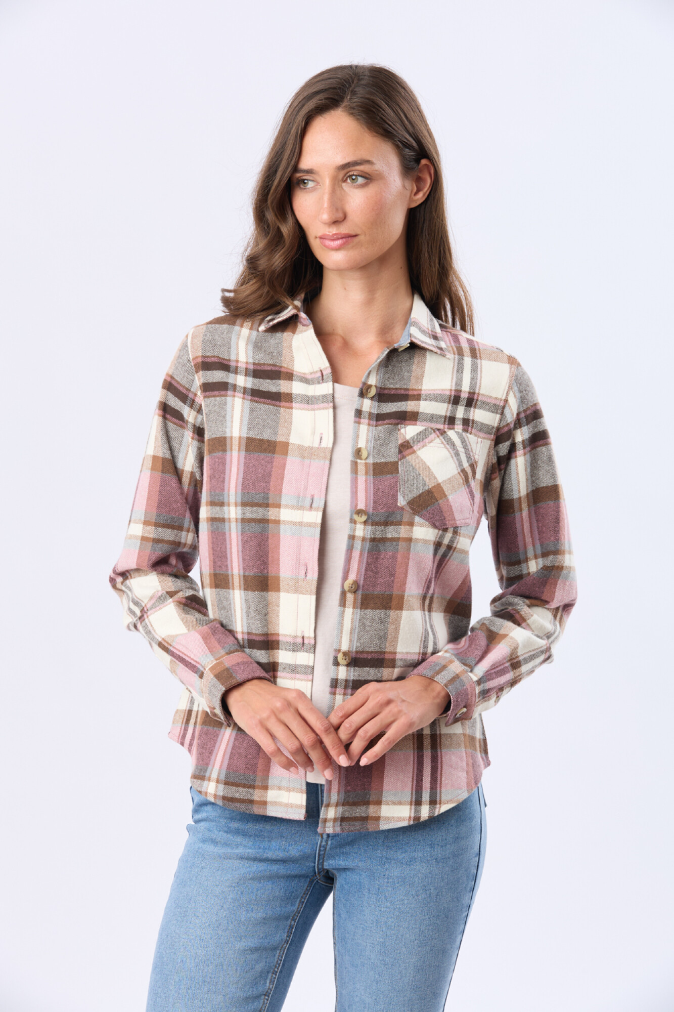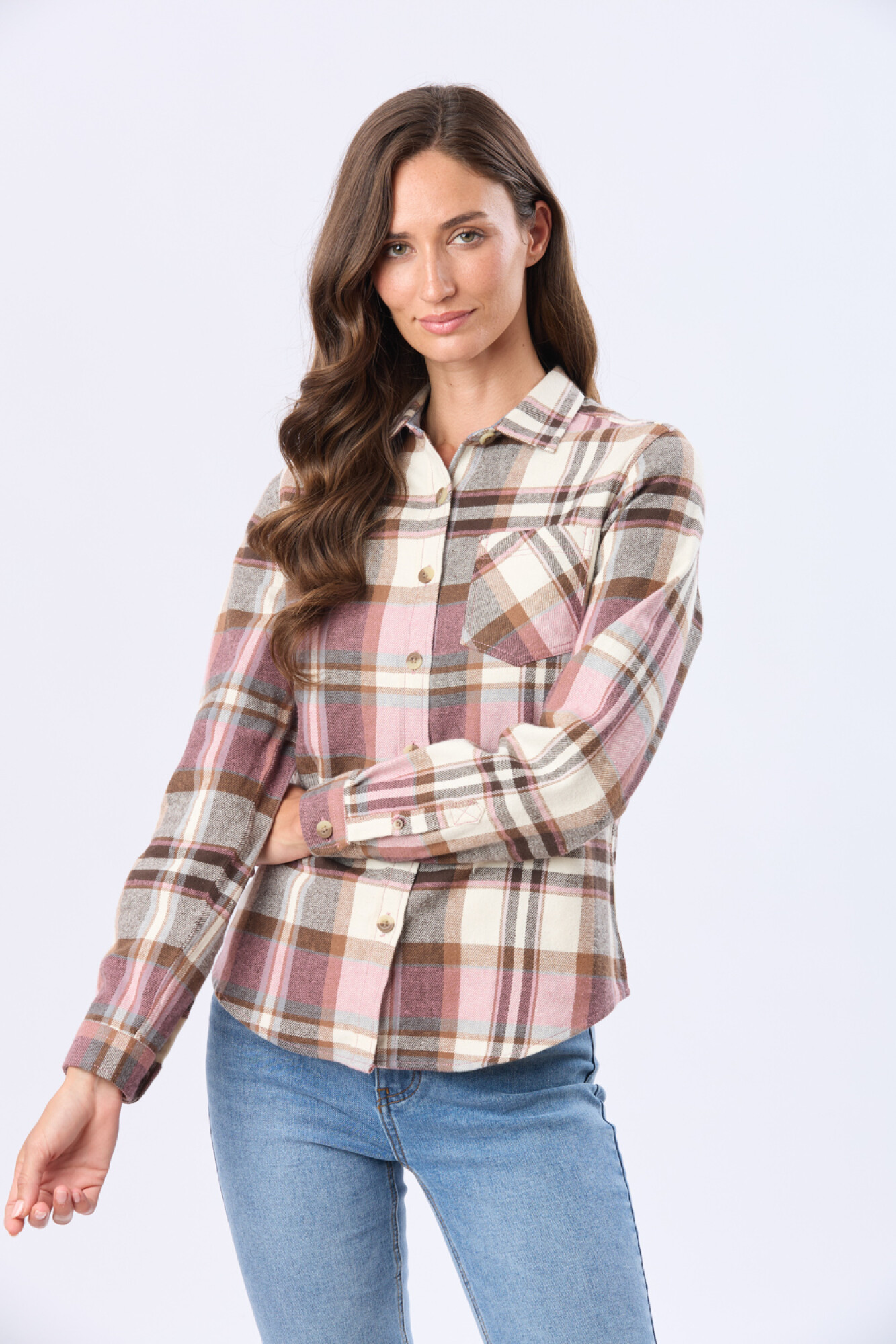 Camisa de viyela a cuadros ideal para los días frescos gracias a tu textura cálida y confortable .Cuenta con cuello camisero , cierre frontal con botones e incorpora un bolsillo en el pecho que suma un detalle practico