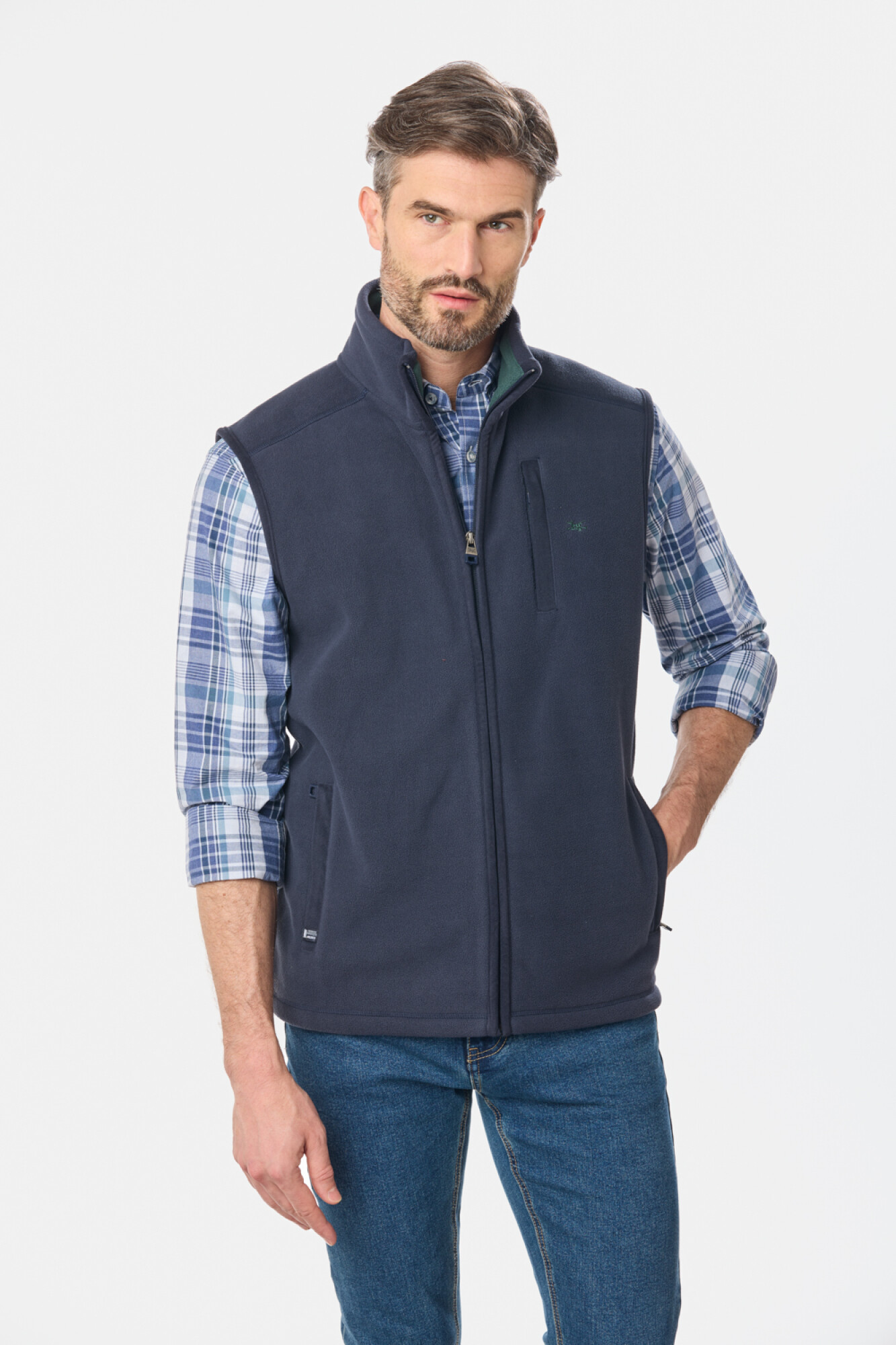 Chaleco de abrigo de polar. Bolsillos laterales y frontal, con logo bordado.