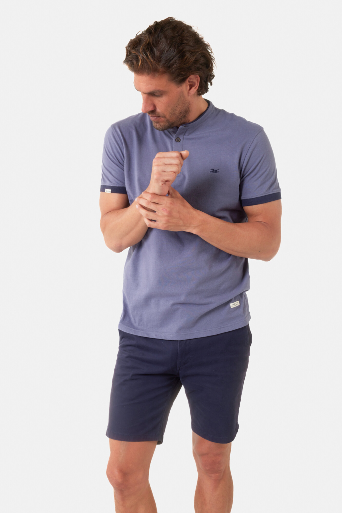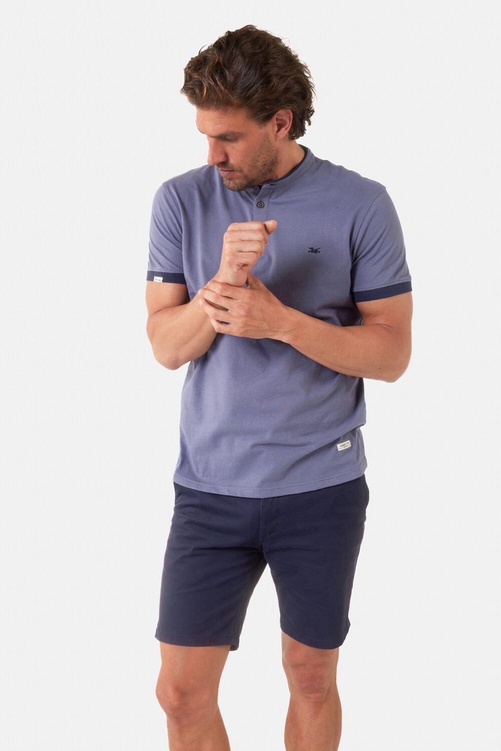 Remera Cuello mao Lisa en Jersey manga corta con botones.