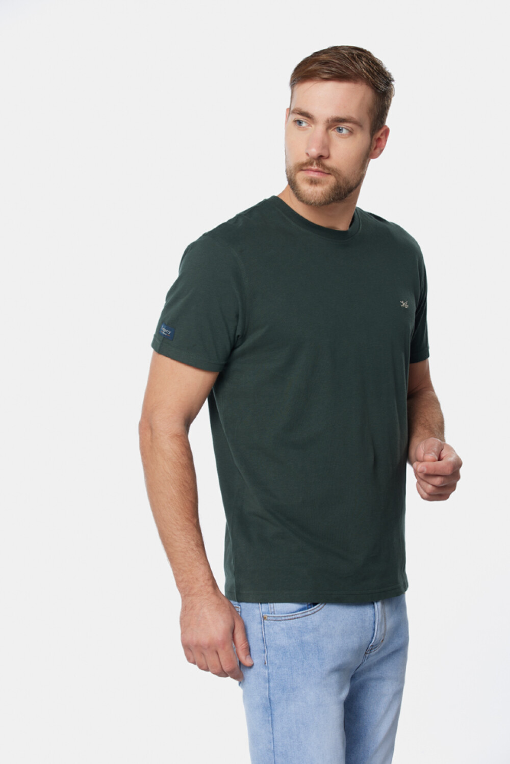 Remera T-Shirt básica de algodón , manga corta, con logo bordado al frente. De calce cómodo y fácil de combinar. El modelo mide 1,85 m y usa talle M.