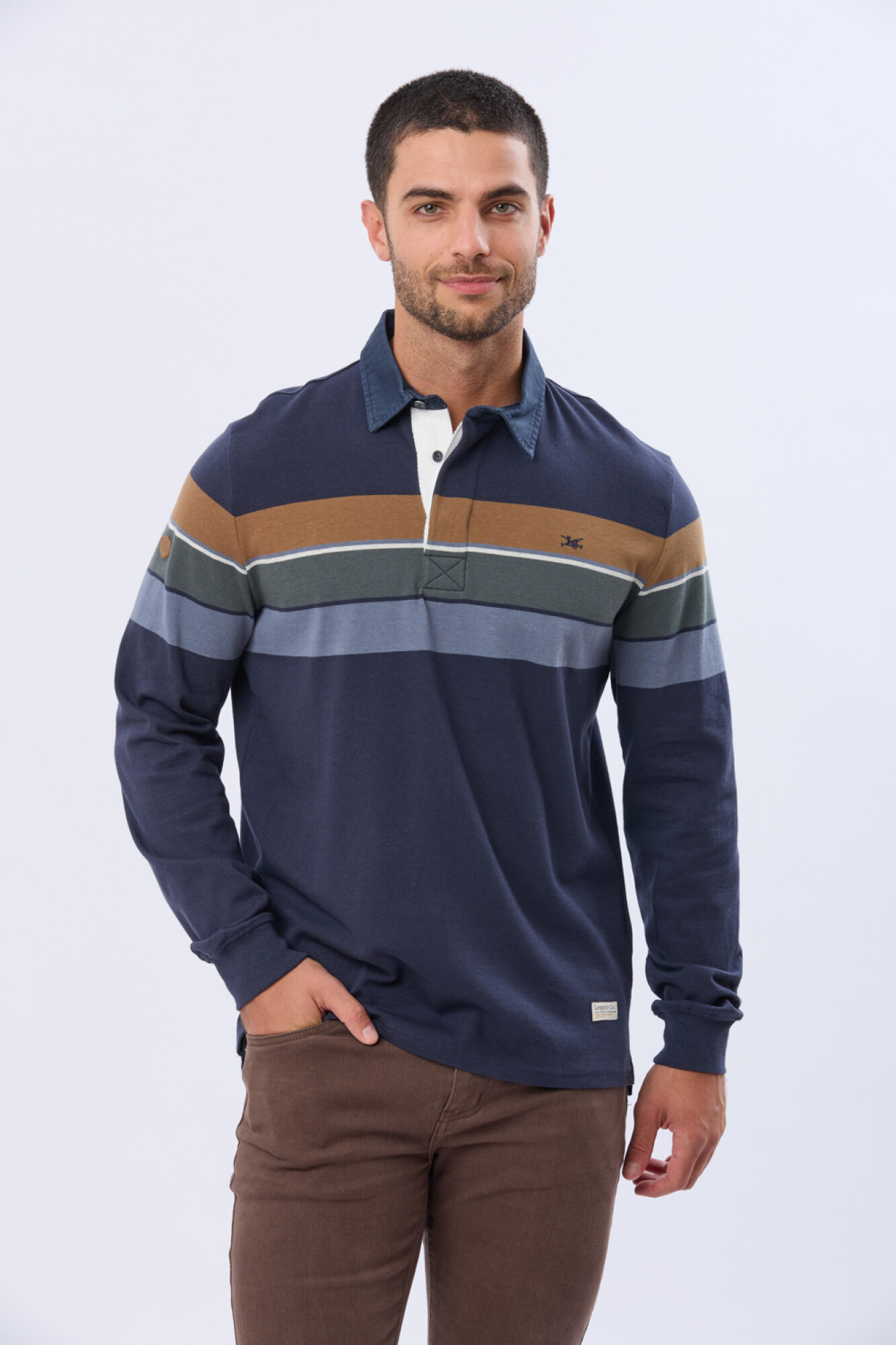 LegacyREMERA POLO RAYADA EN ALGODÓN - AzulRemera polo rayada ideal para la temporada. Aporta abrigo ligero y mantiene la elegancia del clásico polo. Funciona sola en días templados o como capa base cuando baja la temperatura. El modelo mide 1,82 m y usa talle M.LR05969AZULhttps://legacy.com.uy/catalogo/remera-polo-rayada-en-algodon-azul_LR05969_AZUL