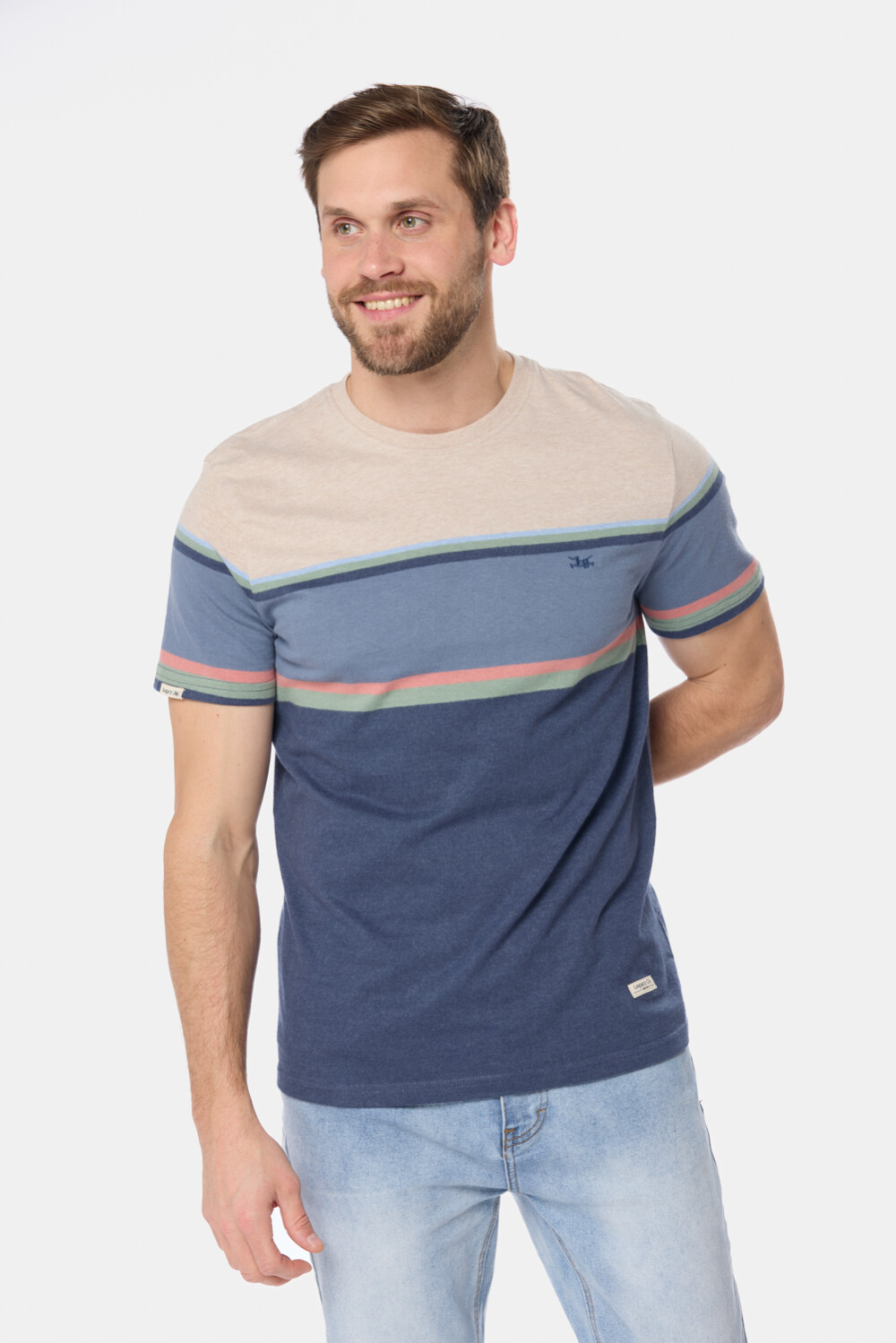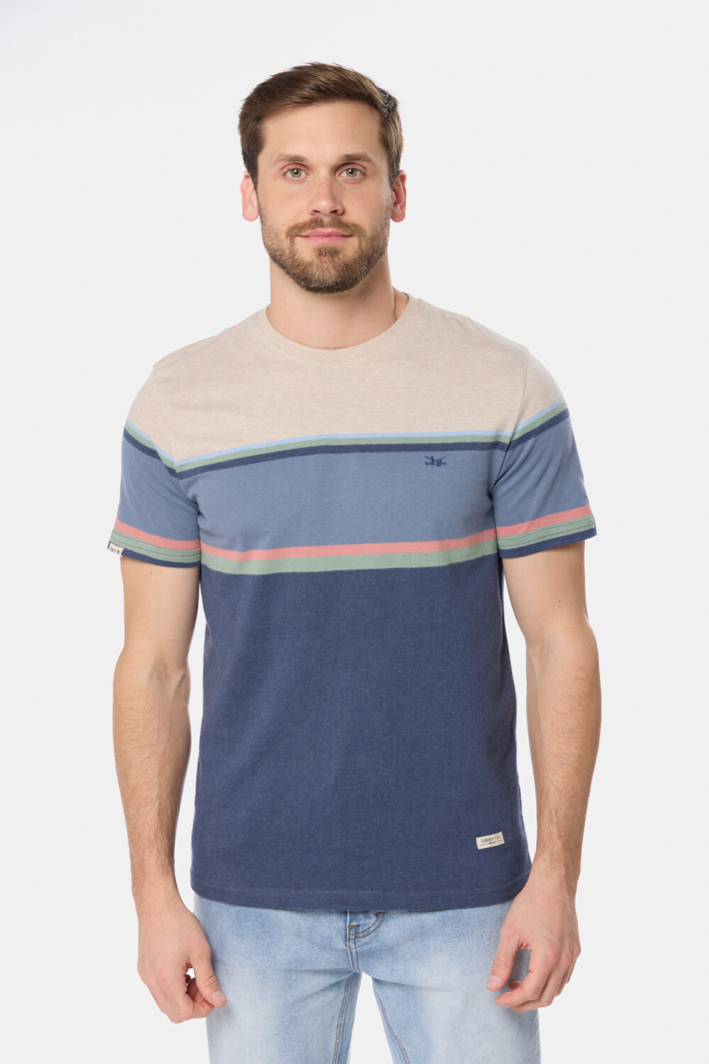 Remera Tshirt manga corta con diseño rayado multicolor.