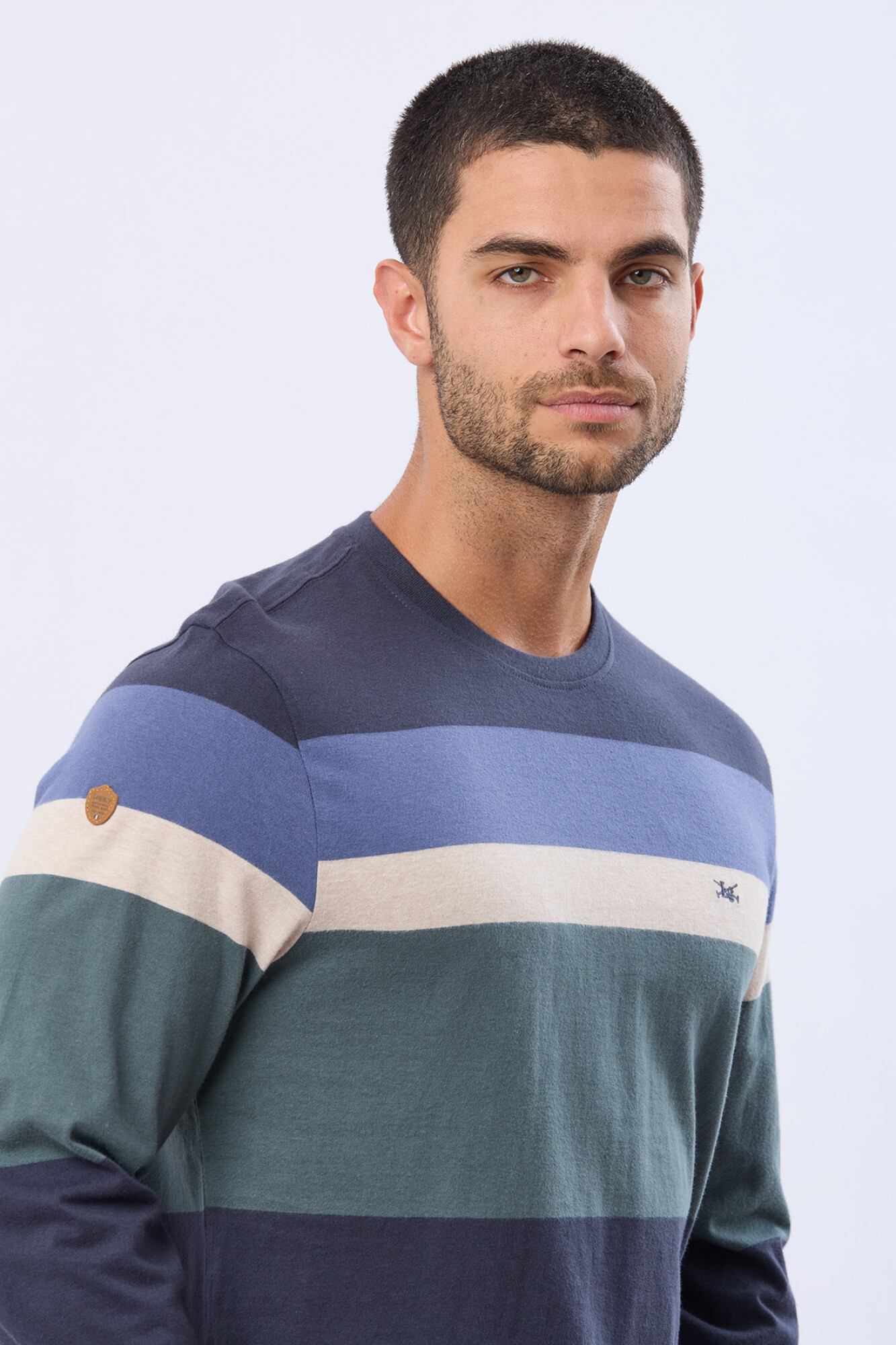Remera T-shirt rayada. Tu nueva compañera de todos los días. Esta remera combina un diseño atractivo con funcionalidad real, ofreciendo comodidad, versatilidad y un calce que se adapta a tu ritmo diario.