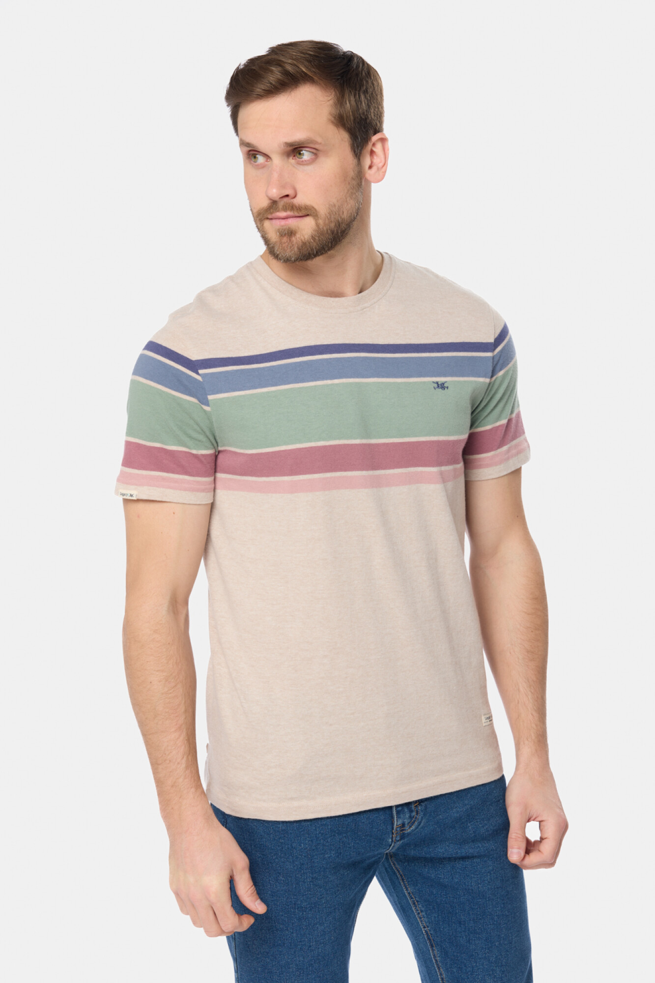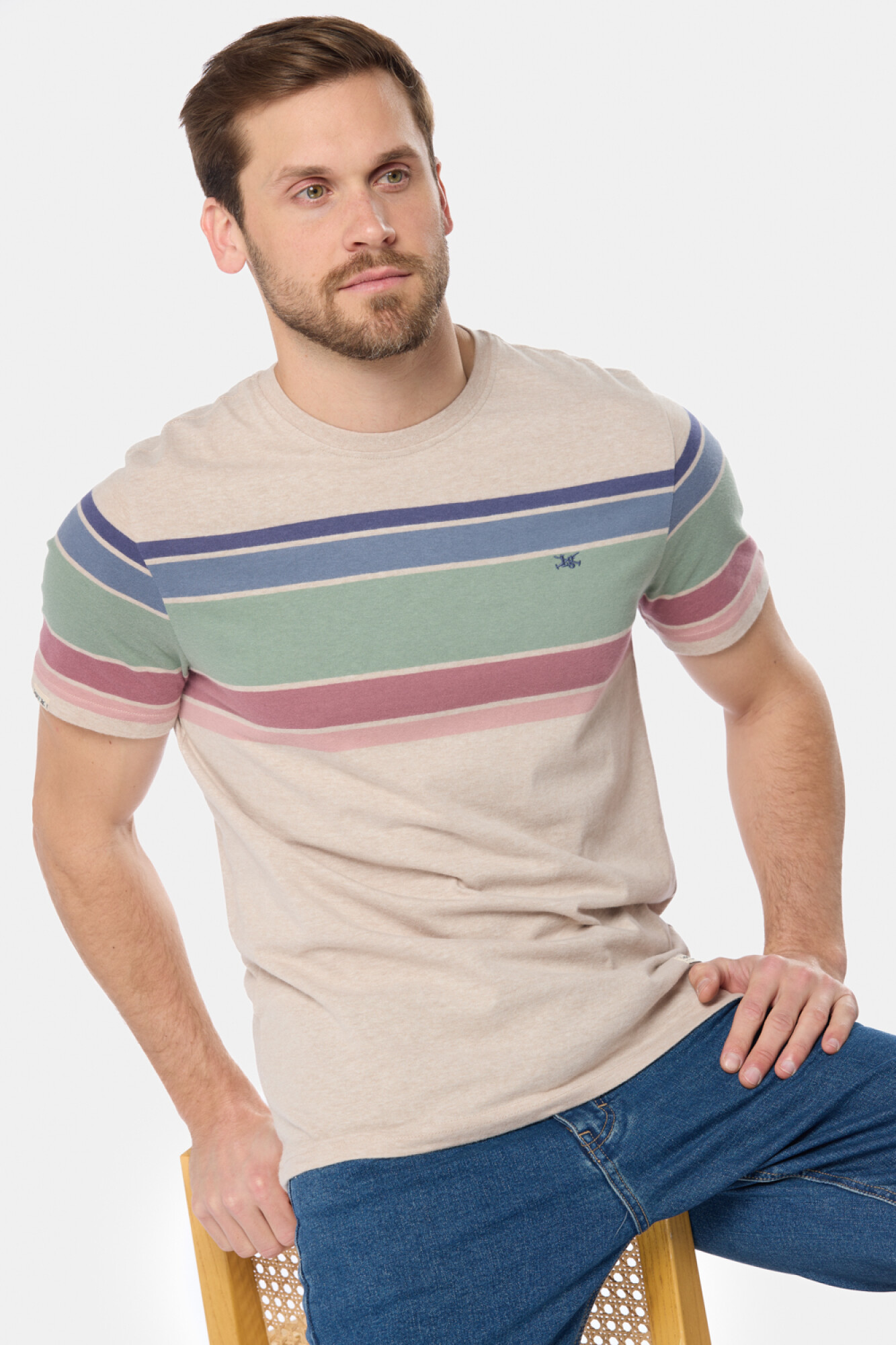 Remera Tshirt manga corta con diseño rayado multicolor.