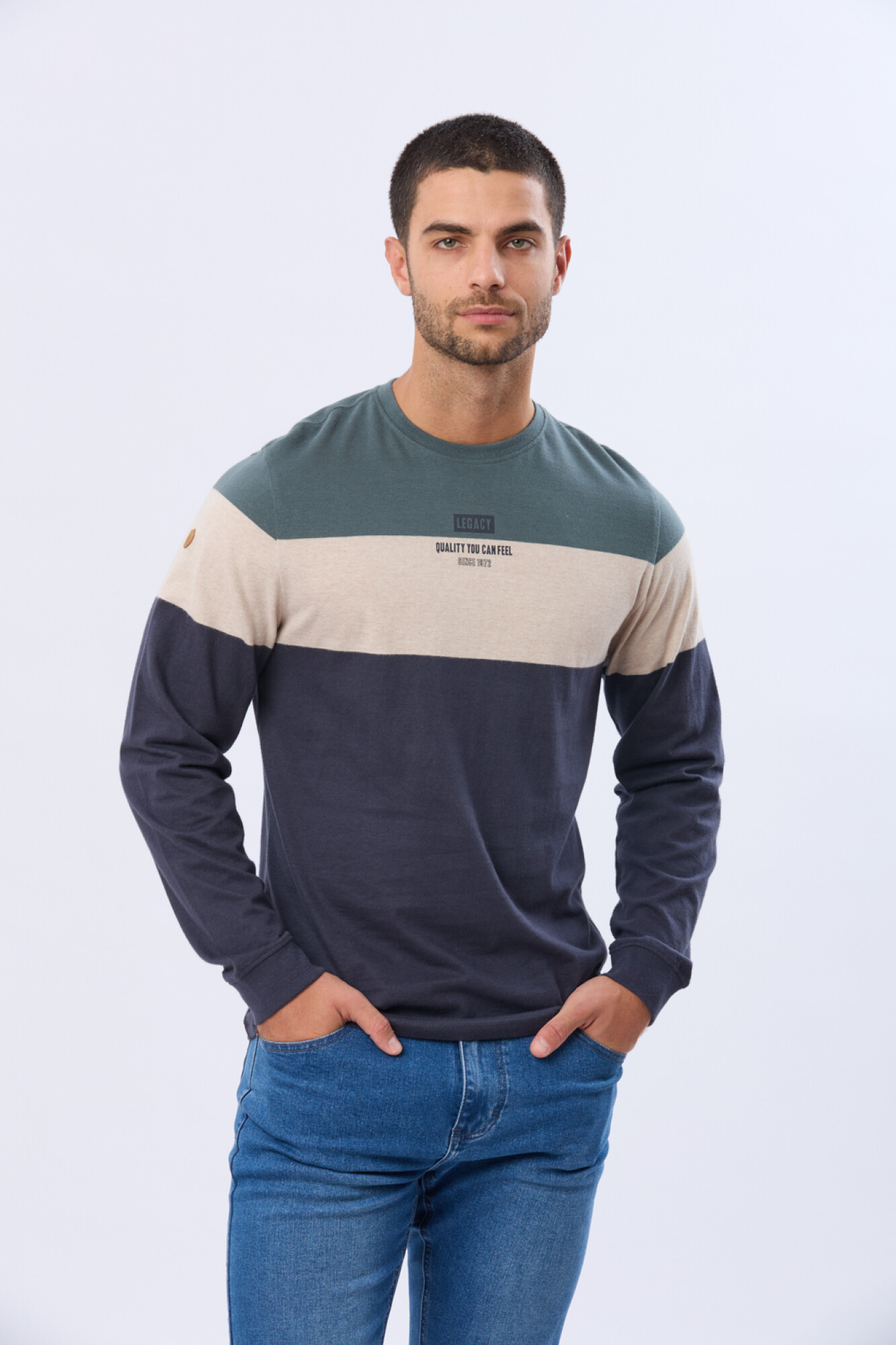 LegacyREMERA RAYADA DE ALGODÓN - AzulRemera t-shirt rayada con estampa en el frente. Estilo pensado pero relajado, perfecto para armar looks casuales que se ven cuidados. Es fácil de combinar porque las rayas funcionan como un neutro con personalidad. El modelo mide 1,82 m y usa talle M.LR06087AZULhttps://legacy.com.uy/catalogo/remera-rayada-de-algodon-azul_LR06087_AZUL