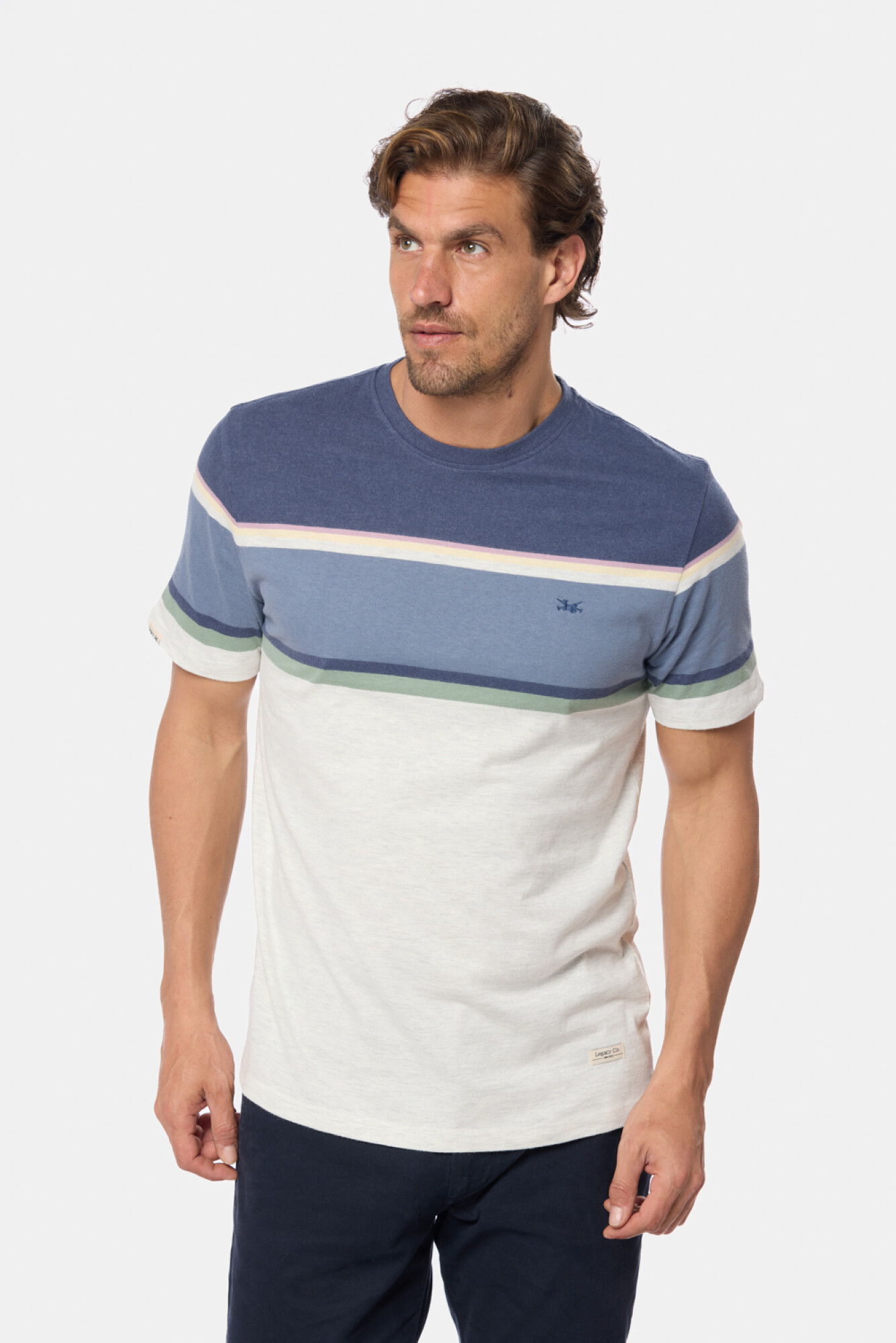 Remera Tshirt manga corta con diseño rayado multicolor.