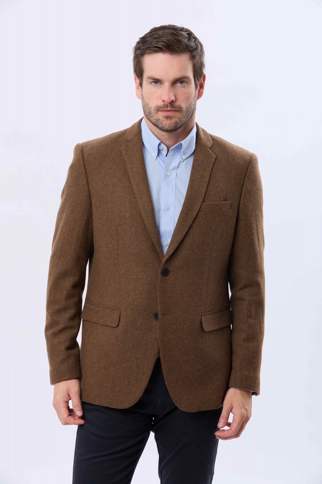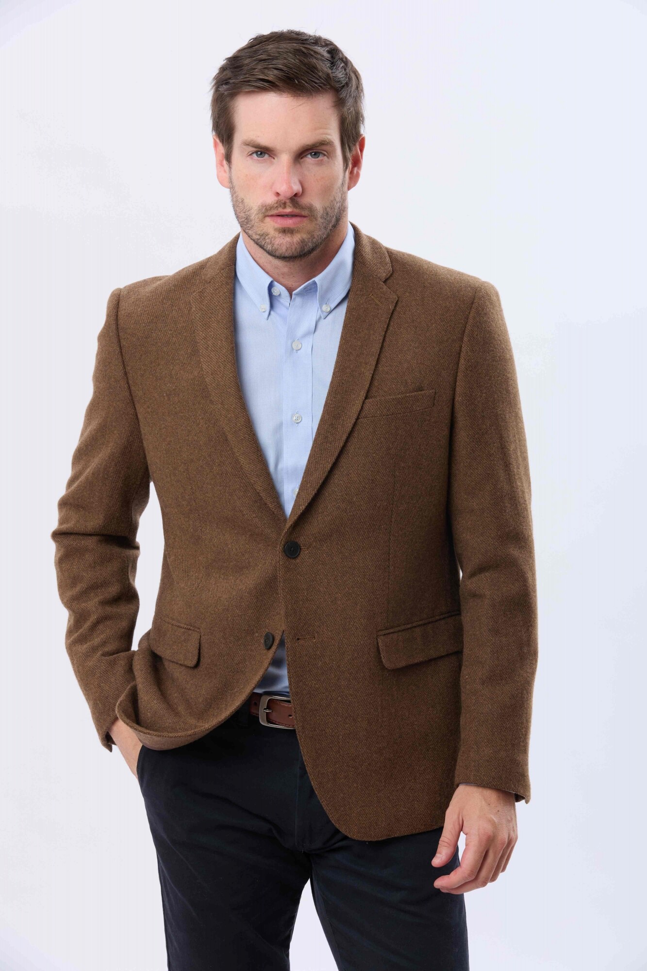 Saco sport de lana .Presenta un diseño clásico con solapa tradicional , calce cómodo y estructura definida