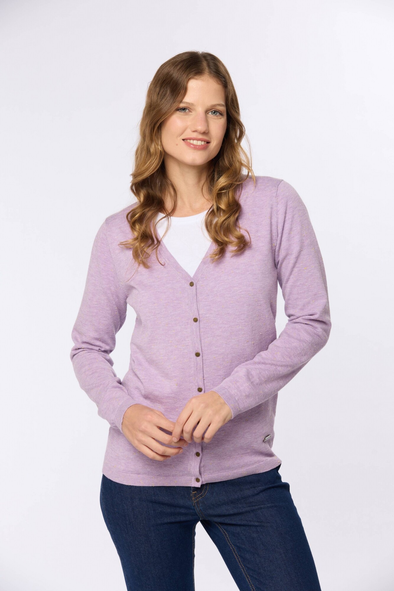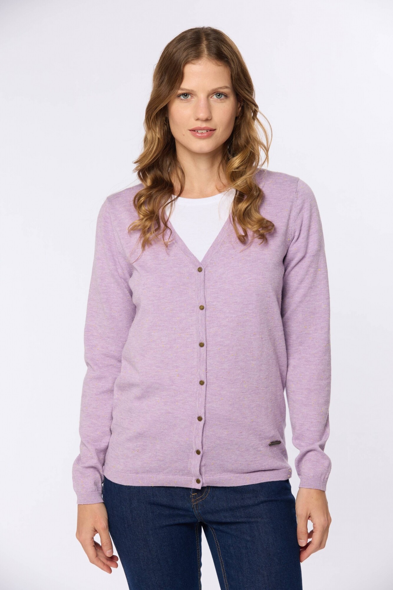 Saco tejido fino de hilo de algodón con botones. Puños en rib. Corte clásico La modelo mide 1,70 m y usa talle S.