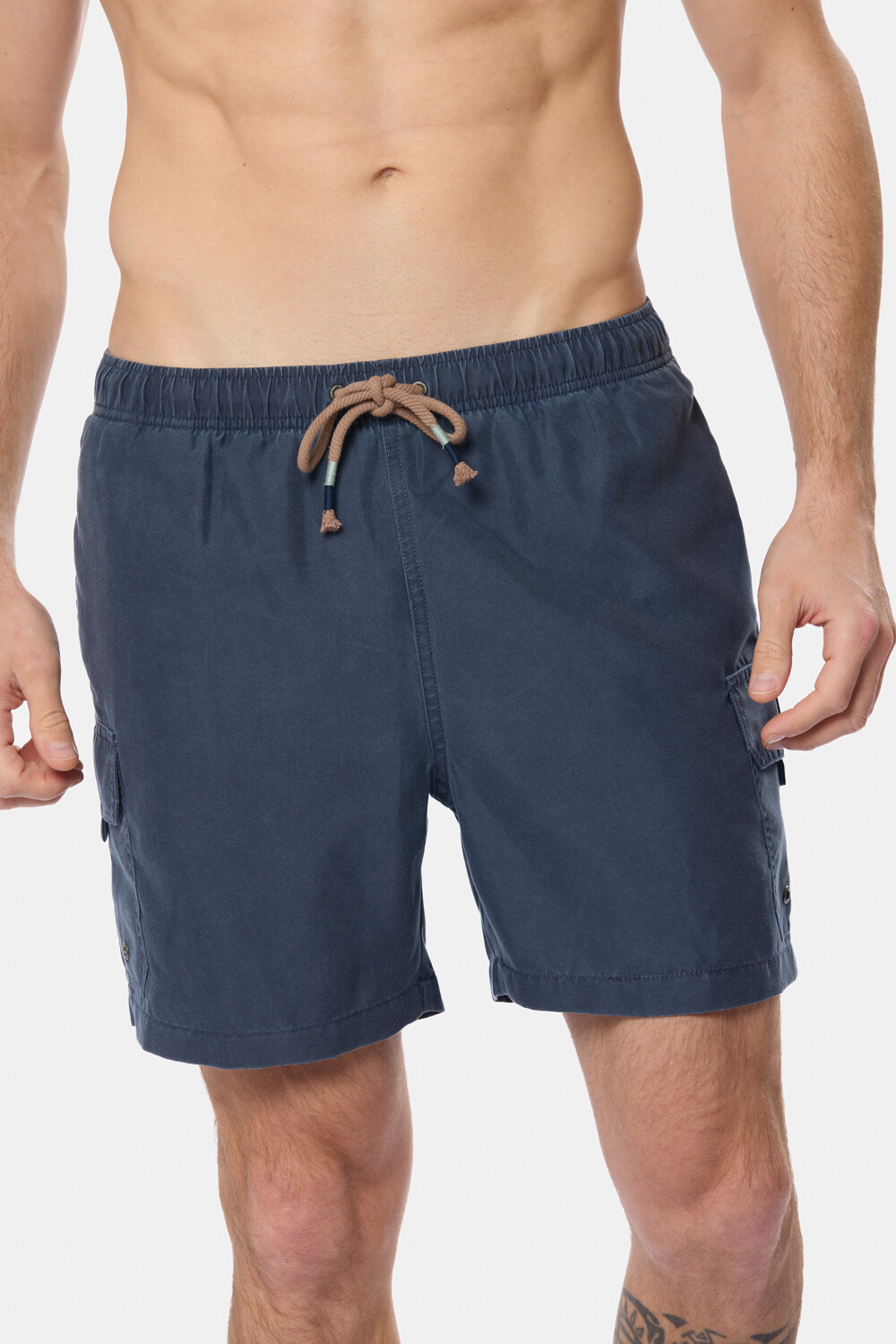 Short de baño cargo ,cintura con elástico y cordón regulable bolsillos laterales y suspensor de malla fina