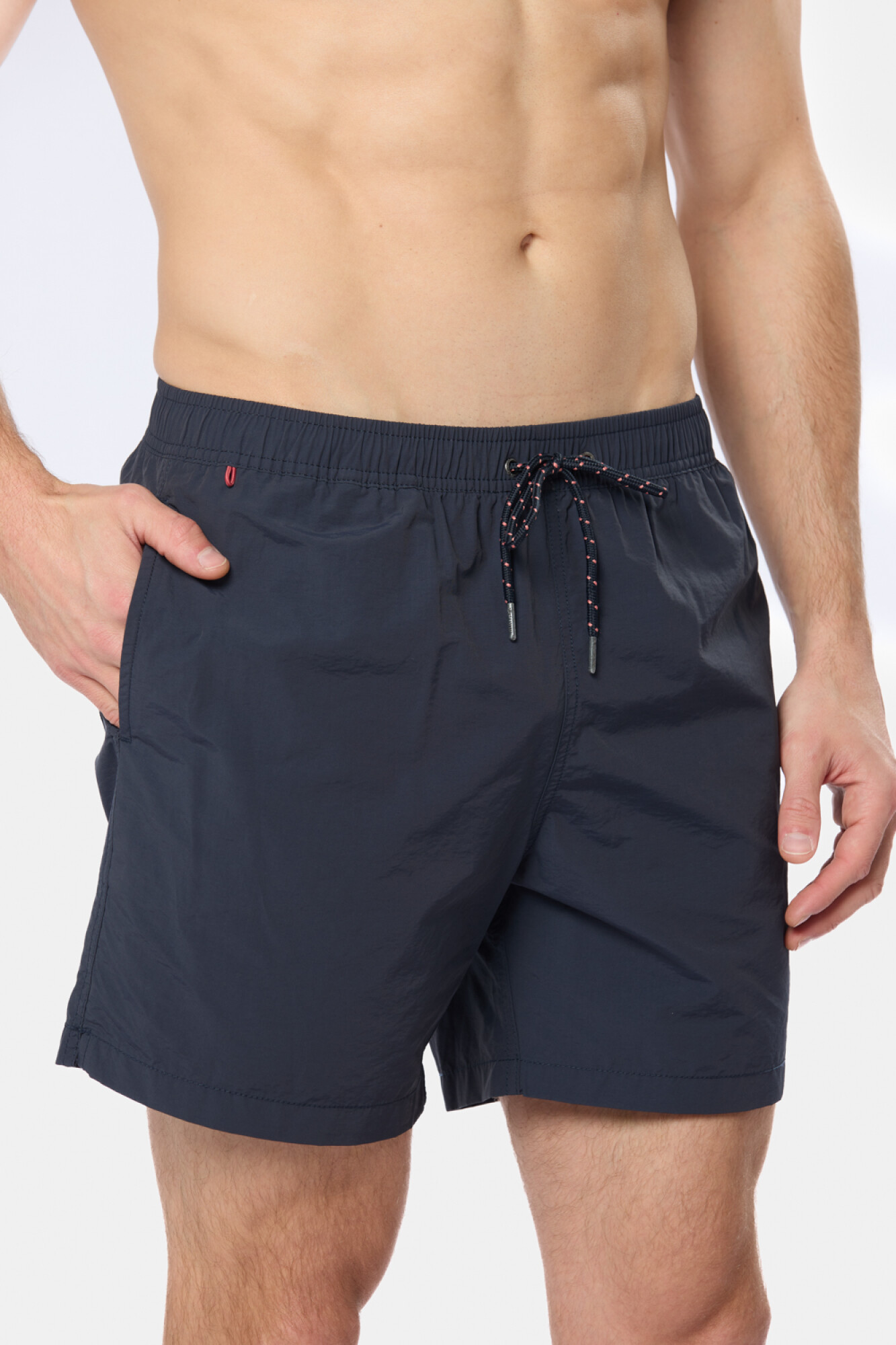 Short de baño clásico liso ,cintura con elástico y cordón regulable dos bolsillos laterales y suspensor de malla fina