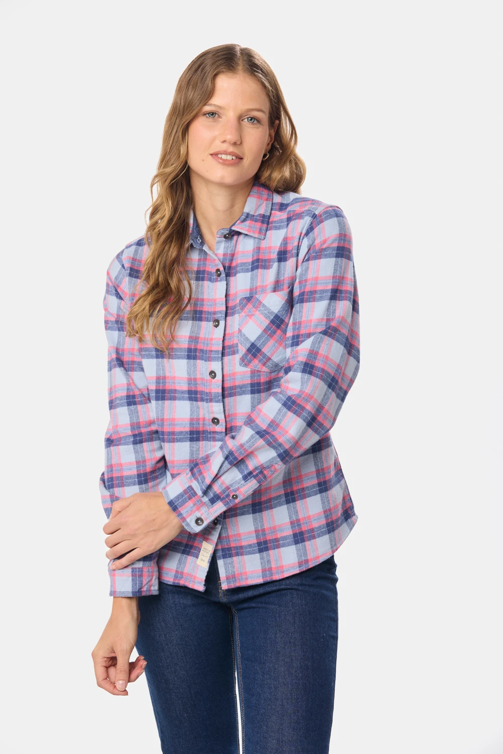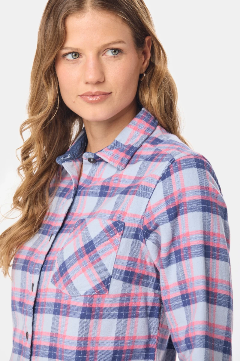 Sobrecamisa de mujer en tela de cuadros tipo tartán o franela. Abrigada y canchera. L2D8A44CELESTE https://legacy.com.uy/catalogo/sobrecamisa-cuadro-celeste_L2D8A44_CELESTE