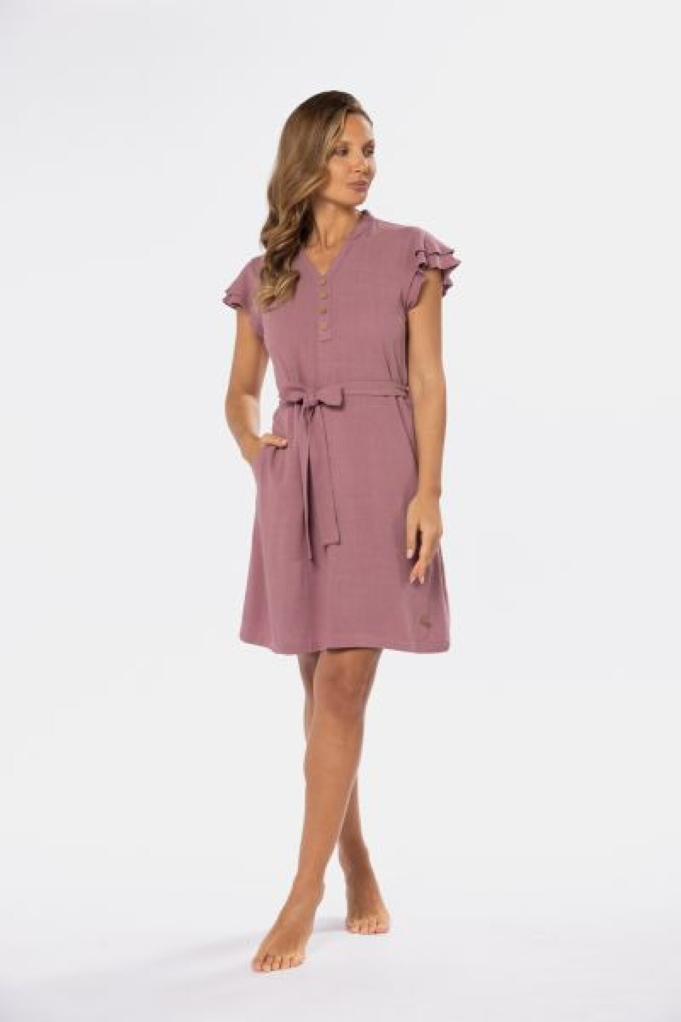 Legacy WomanVESTIDO DE LINO - RosadoVestido de lino y viscosa liso en escote V con doble capa de volados en las mangas. Botones personalizados en madera y lazo para ajustarlo. Modelo usa talle S y mide 1.74.LVD1013ROSAhttps://legacy.com.uy/catalogo/vestido-de-lino-rosado_LVD1013_ROSA
